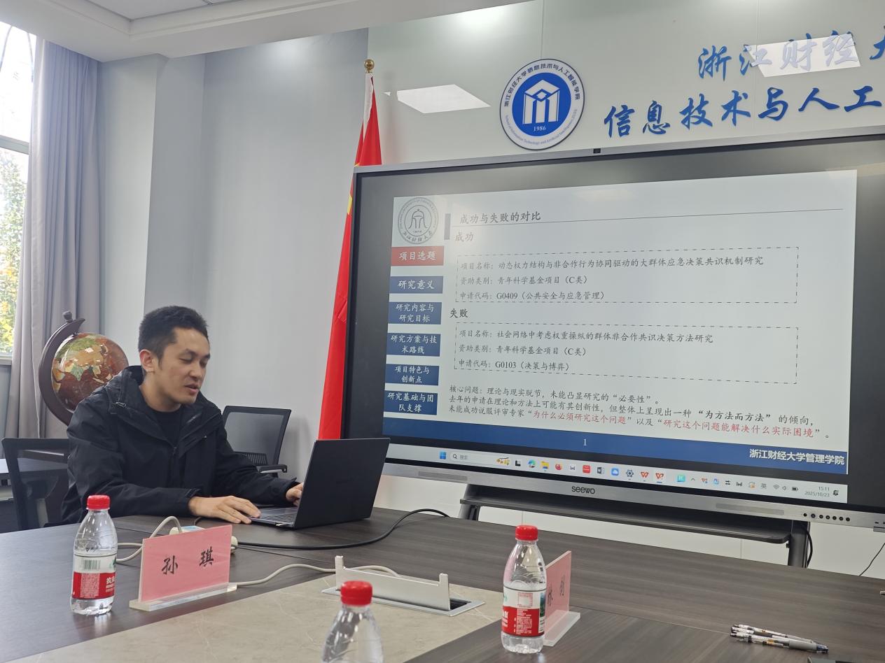 楼404会议室举行2026年国家科研项目申报动员暨经验分享会。学院院长张帅教授作申报动员演讲,立项国家级课题的青年教师张翔博士、特邀管理学院孙琪博士为司机社