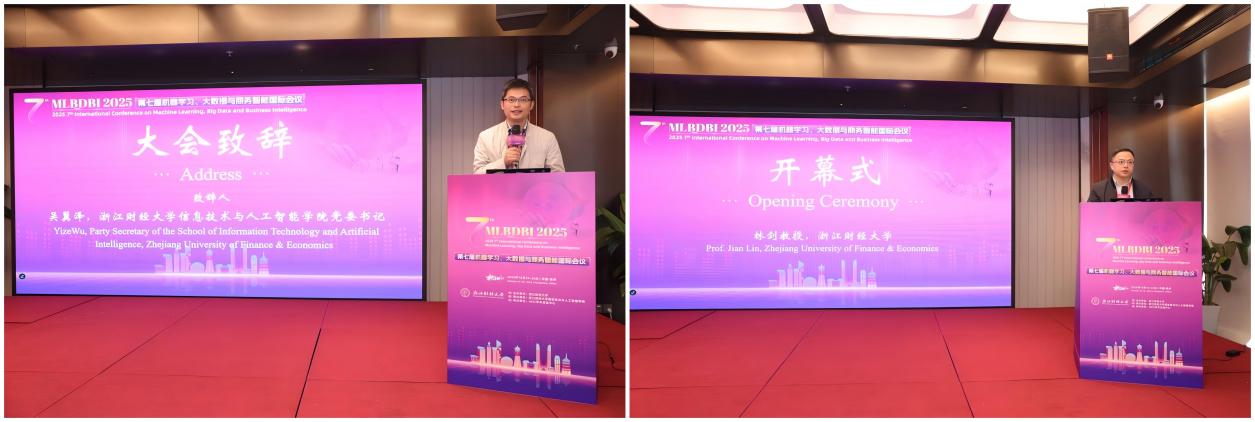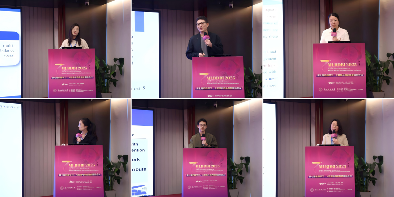 2025年10月24日至26日,由司机社 主办,司机社 承办,AEIC学术交流中心协办的第七届机器学习、大数据与商务智能国际会议(MLBDBI 2025)在杭州成功举办。武汉大学王峰教授、大连海事大学白丹宇教授、澳门科技大学高开周教授、浙江工商大学毛郁欣教授、司机社 司机社 党委书记吴翼泽、司机社 副院长林剑等出席会议。来自澳门科技大学、司机社 、天津职业技术师范大学等全国多所高校,太湖流域管理局、甘肃省气象服务中心、建设银行等多家企事业单位的专家学者、青年教师、研究生等齐聚杭州,共同交流机器学习、大数据与商务智能的最新研究进展和未来趋势。