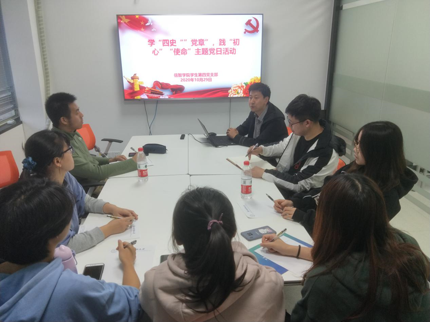 学生第四党支部于9301B举行“学‘四史’《中国共产党章程》,践‘初心使命’”主题党日活动。