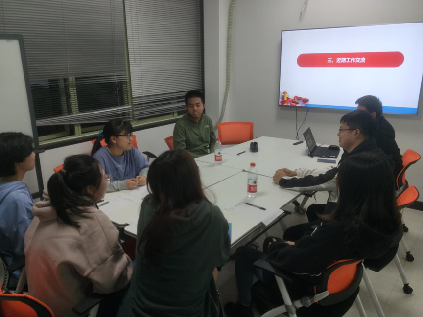 会上,大家对近期学习、工作进行了交流,田聪和徐军军老师对考研的学生进行鼓励,提出了一些学习建议。