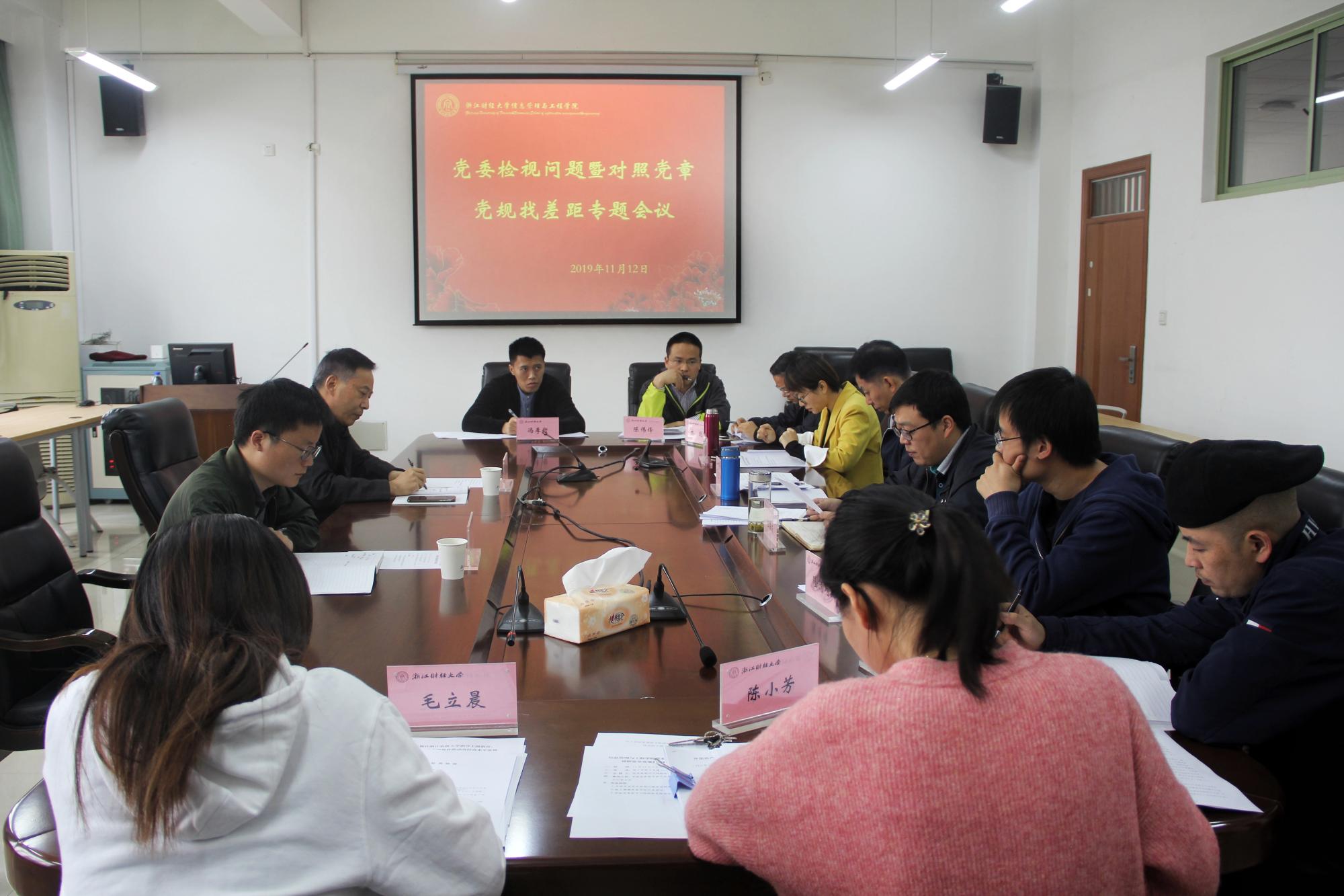 近日,信工学院党委召开“不忘初心、牢记使命”主题教育检视问题暨对照党章党规找差距专题会议。学院党委领导班子和各党支部书记参加会议。校“不忘初心、牢记使命”主题教育第七联络组组长蔡国金、贺文凯到会指导。会议由学院党委副书记陆颋浩主持