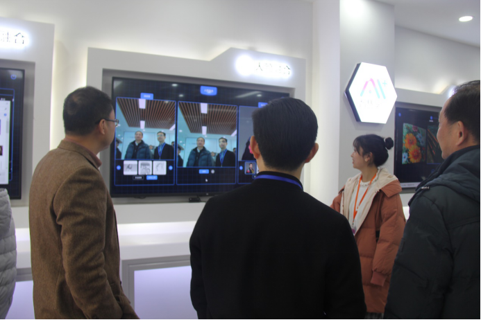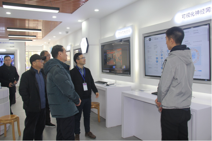 随后,陈远高教授向嘉宾一行介绍了人工智能体验园的视频融合系统、人脸融合系统、图像风格迁移、可视化神经网络等。