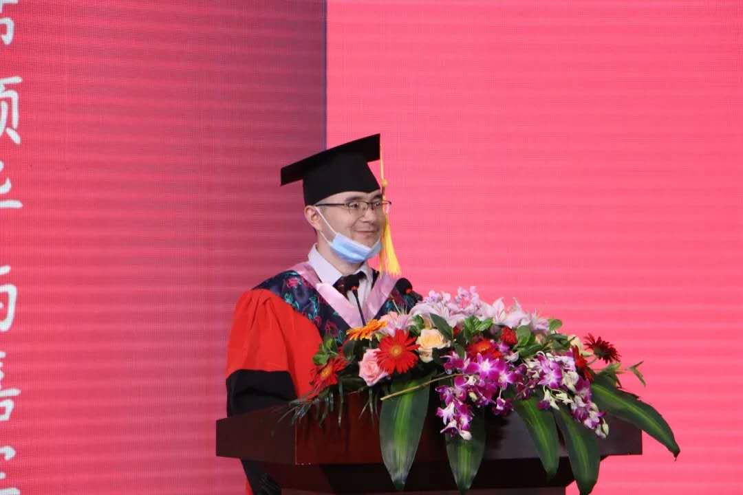 随着国歌奏唱的结束,典礼正式开始。首先,张帅院长进行了致辞。他肯定了各位本科毕业生的努力成果,表达了对大家的依依不舍与衷心祝福,并宣布2020届毕业生们正式毕业,他们圆满结束了自己的大学四年生活。