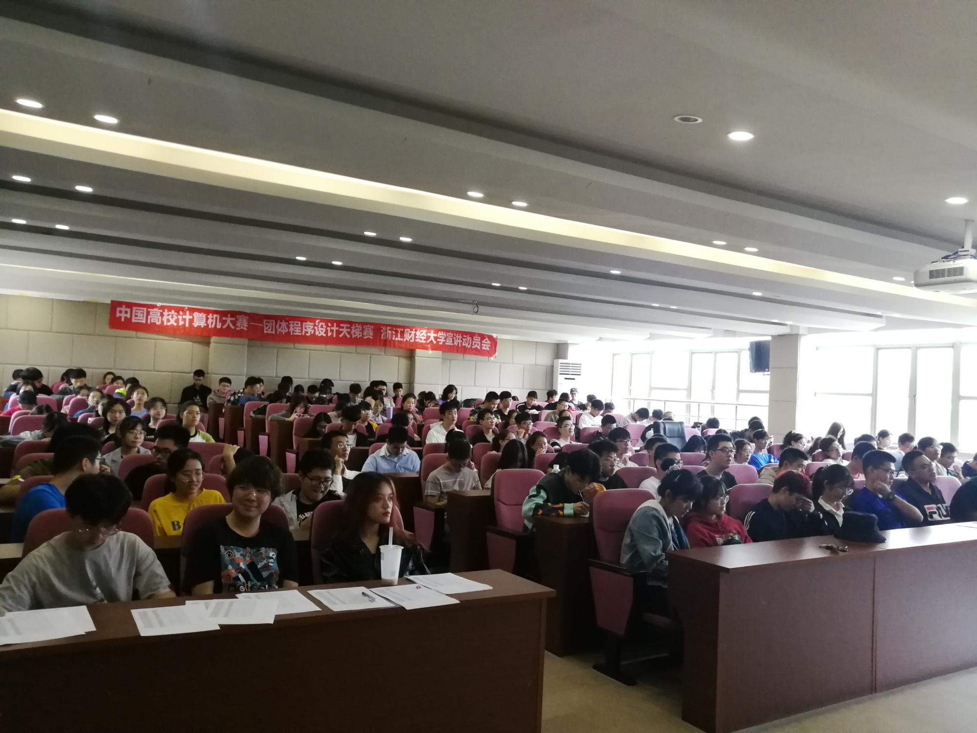 主持人朱凌老师在宣讲会上向同学们介绍了中国高校计算机大赛——团体程序设计天梯赛的简介、规程、和与众不同的赛制,以及我校往年所取得的优异成绩,并提醒同学们注意今年天梯赛组委会做出的一些新调整与改变,最后,鼓励和动员同学们积极报名参加天梯赛的全校选拔比赛,给自己多争取一个机会,让自己的青春不留遗憾。