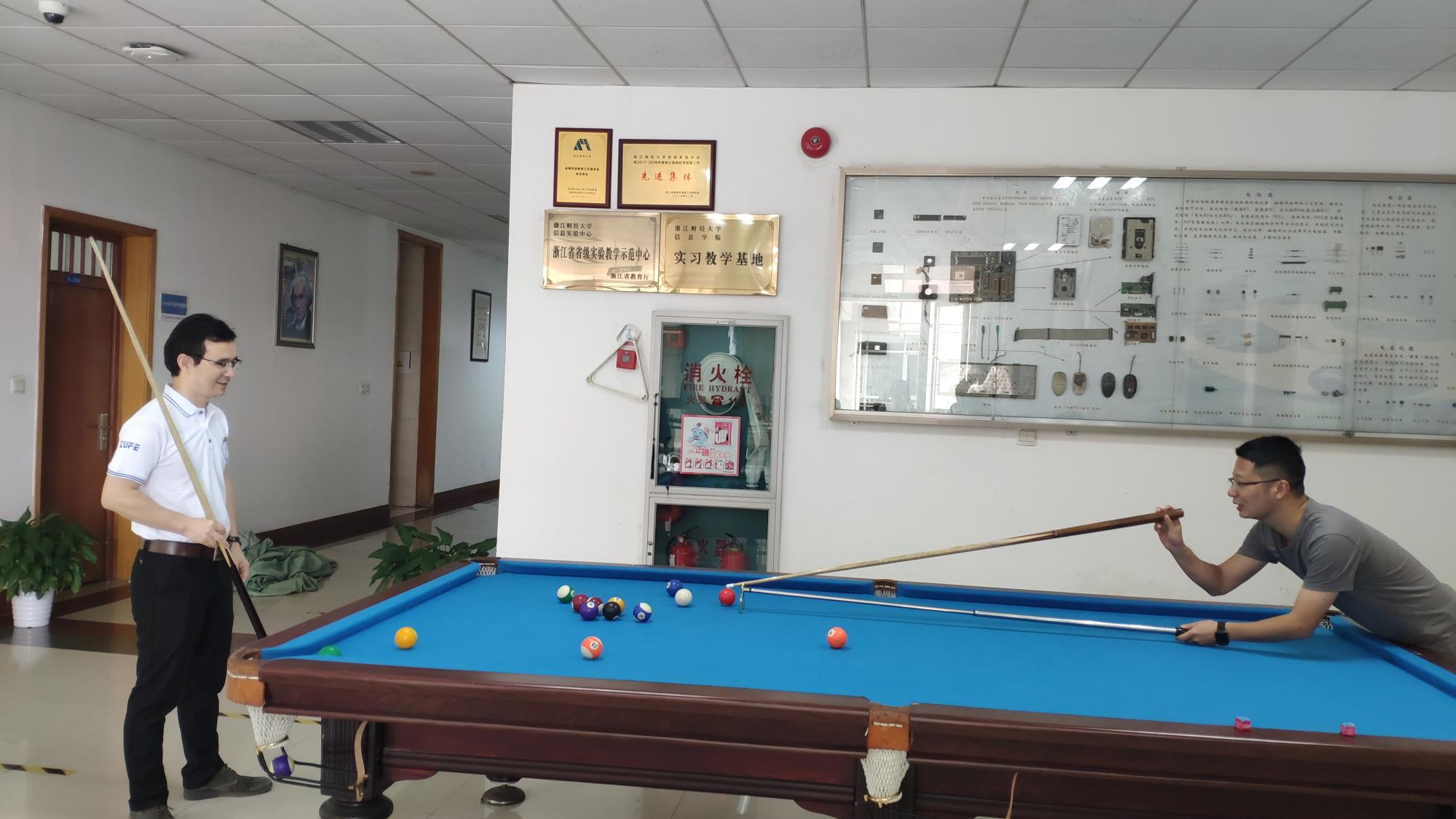 赛前学院台球爱好教师利用休息时间勤加苦练,分工会精心布置场地,更新设备。台球赛正式拉开序幕,经过抽签30多位参赛教师分成男子组、女子组进行两两对决,胜者晋级下一轮,直至最终角逐冠亚军。