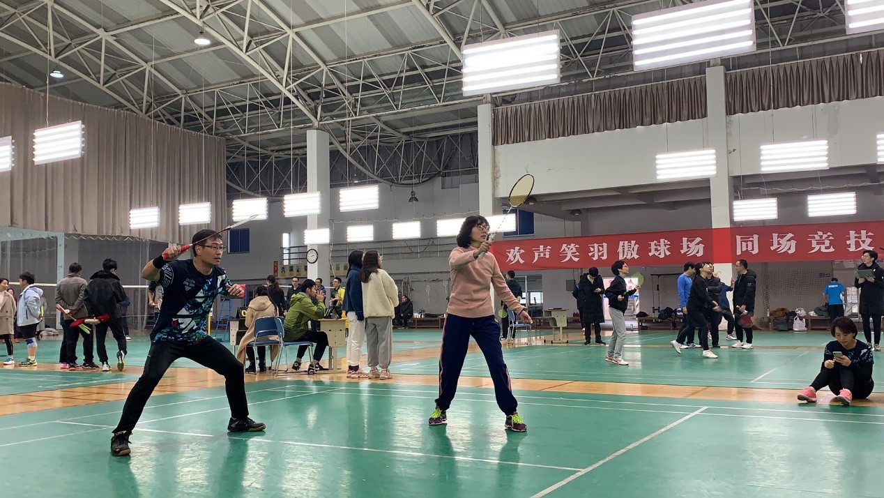 赛前分工组积极组织羽毛球队训练,赛场上教练与队员们机智排兵布队,队员们挥洒汗水,长拉短吊、大力扣杀,顽强拼搏,挣每一球、拼每一分,比赛十分激烈,精彩纷呈;赛场下,队员们专心关注队友比赛,纳喊助威,羽球飞舞,气氛热烈。