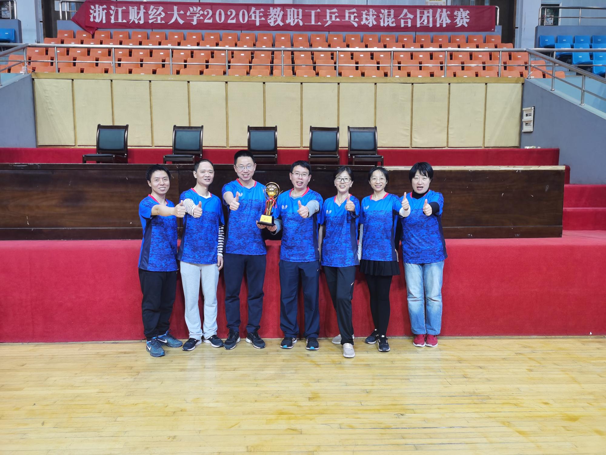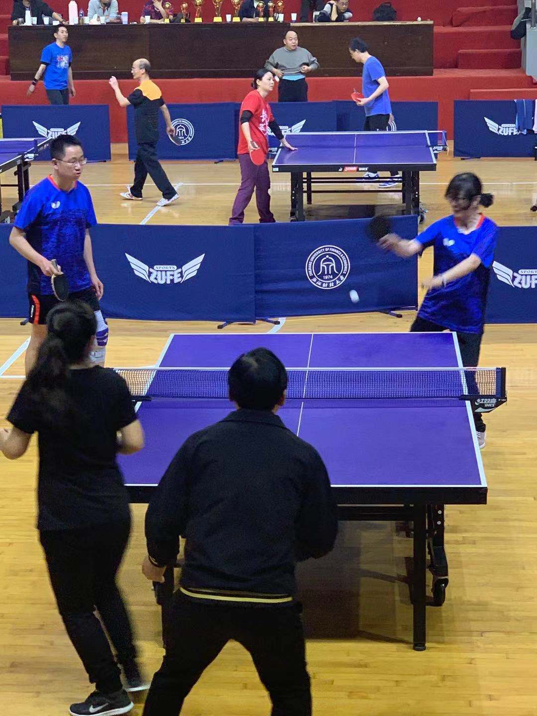 分工会组织教师参加校2020年教职工乒乓球混合团体赛,经过一整天的鏖战,学院分工会取得历史性突破,首次获得乒乓球赛团体季军。