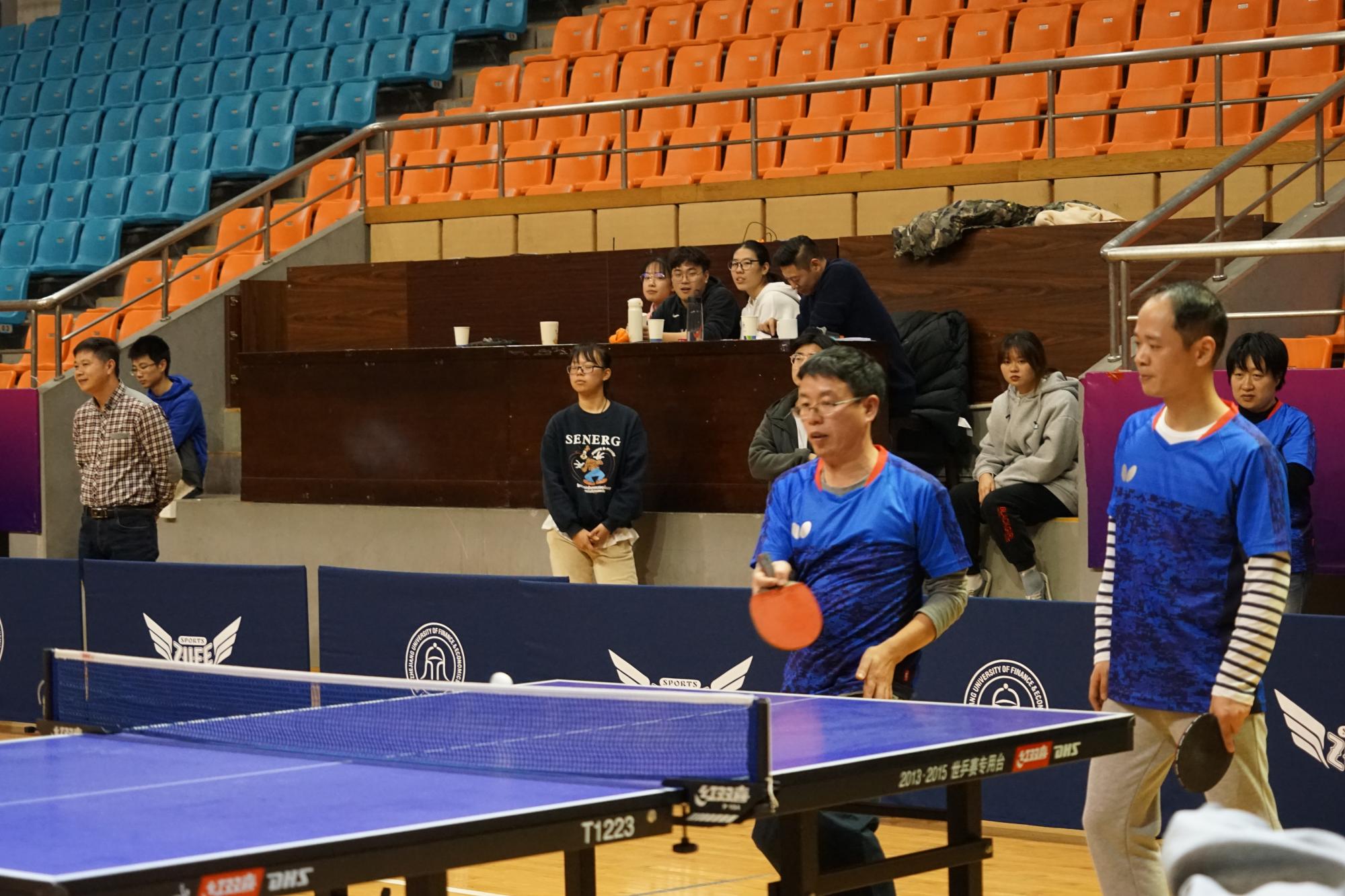 赛前分工组积极动员教师参加比赛,在亮丽的队服上印上学院的LOGO和名称,期望能成为赛场上一道风景。正式比赛日队员早早到场,积极热身投入战斗。教练与队员们细致考量队手、机智排兵布队,赛场上队员们挥洒汗水,使出千般绝技发球抢攻、正手提拉、反手推挡,关键时刻队员们团结合作,大家众志成城,关注场上每局比赛,每一分的争夺,呼喊加油,鼓劲助威!终于我们创造历史,夺得季军!