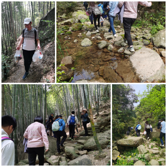 老师们一行迎着灿烂的朝阳出发前往莫干山风景名胜区。老师们从莫干山山脚出发,穿过村庄,走过小桥,到达徒步的起点。老师们穿梭在茂林修竹之间,耳畔是山泉叮咚、风吹草鸣、鸟语虫叫,眼前是翠竹参天、繁花锦簇、瀑布飞虹,如此惬意的风景让人不知不觉就忽略了爬山的劳累,所有的烦恼和疲惫在这一刻全都抛却在了脑后,能欣赏到这份美景,此行已是值得。虽然山路崎岖,但老师们在互相鼓励和帮助下都完成了艰难的徒步之旅。