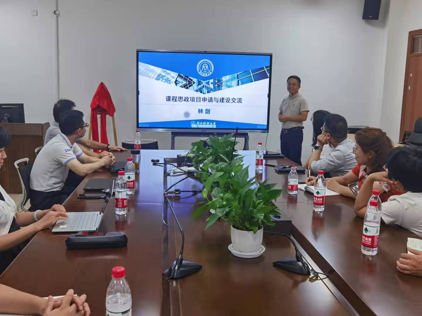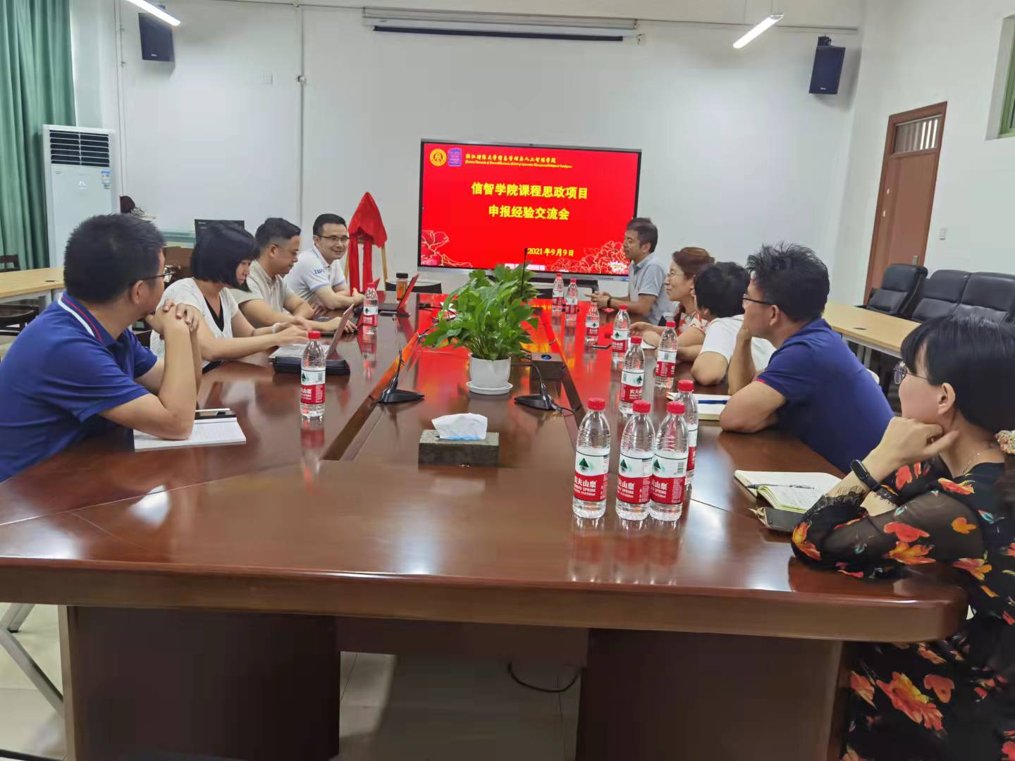 于9月9日下午13:40在9-404会议室召开课程思政经验交流会,会议邀请了2021年成功申报省级课程思政项目的陈明晶老师和林剑老师做经验交流与分享,教学院长陈远高主持会议,司机社
