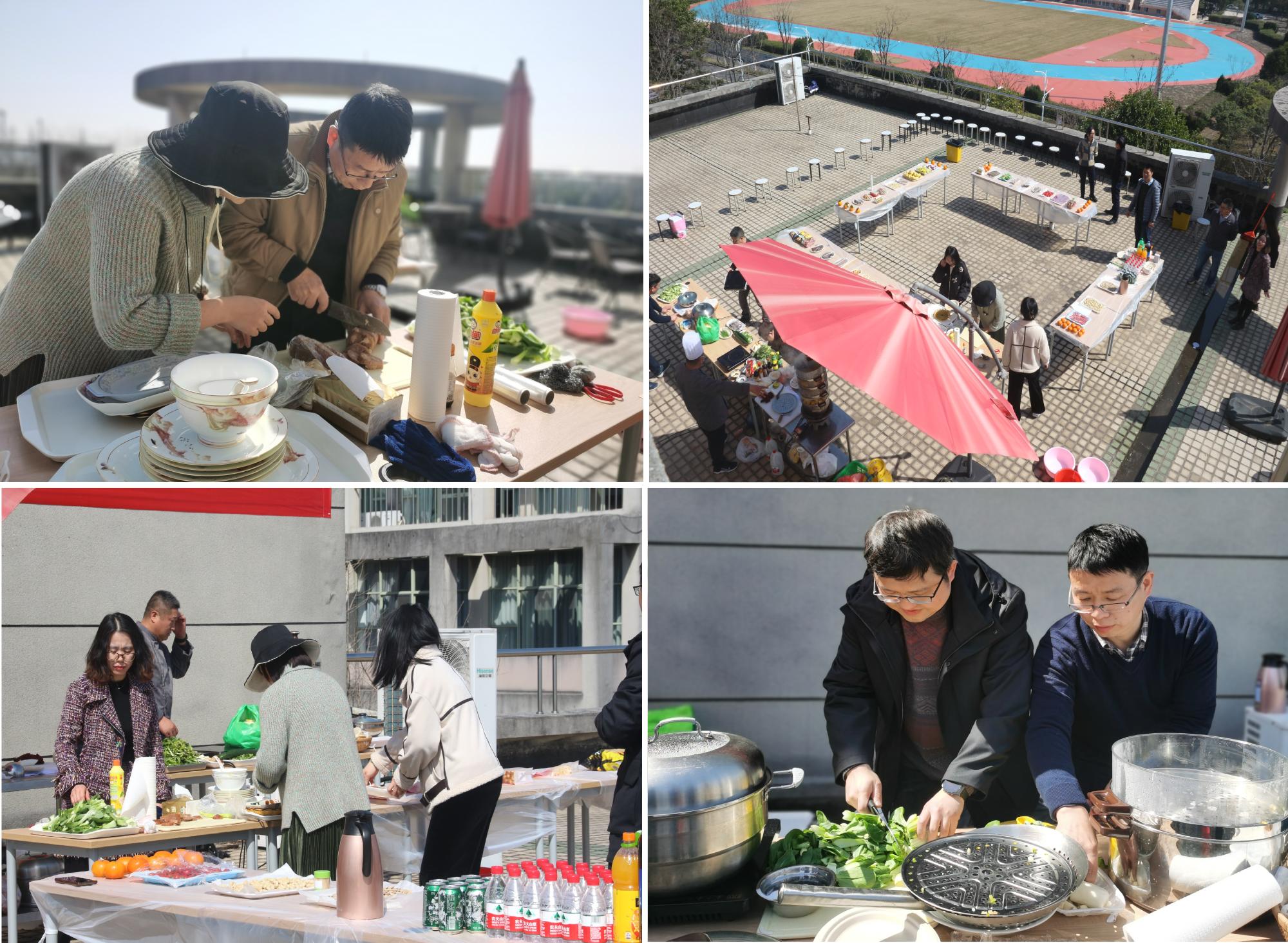 随后各位厨艺优秀的老师各显神通,为大家奉上亲自制作的各类佳肴,有还没出锅就被预定一空的五彩水饺、凌晨四点开始煲的鸡汤、深受大家欢迎的羊肉等等,张帅院长和隆清琦副院长更是现场为大家制作,娴熟的炒菜手法和精湛的厨艺收获一片叫好。