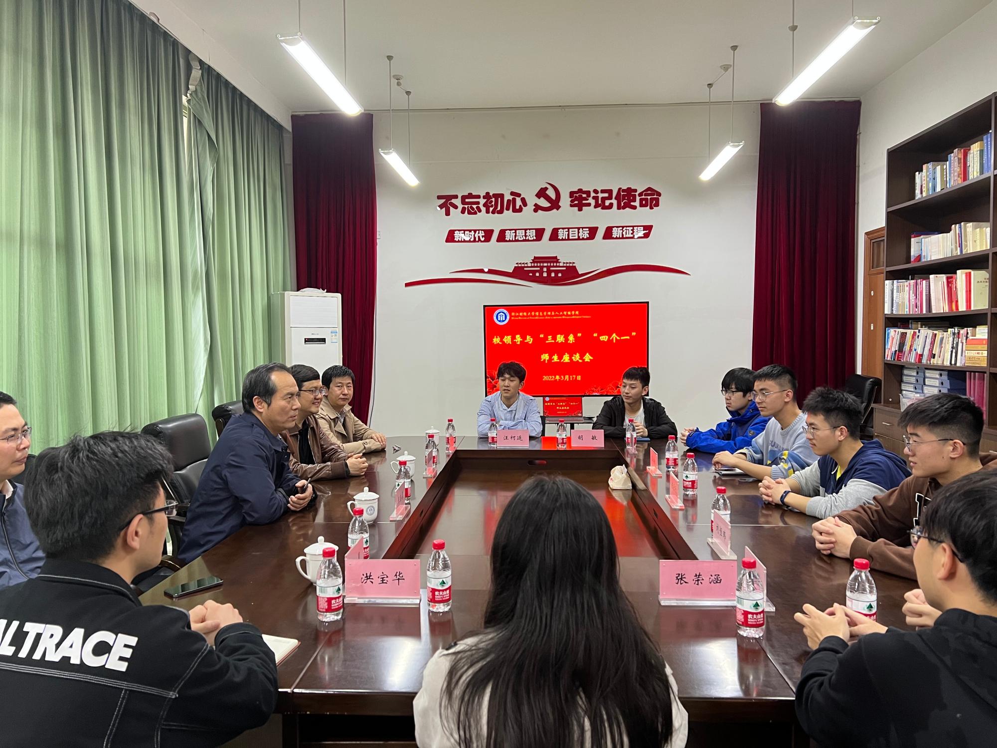 随后,王奎泉副校长与联系班级、联系寝室、联系学生等进行了深入交流。他详细询问了大家的学习生活情况,针对当前大学生实际结合自身求学经历,分享了自己的学习经验,对同学们提出了诸多宝贵的意见建议。他鼓励大家始终把学业放在第一位,尽早做好升学就业规划,积极参加体育锻炼,营造良好的寝室氛围,展现浙财学子良好的精神风貌,为投身国家建设打下坚实的基础。