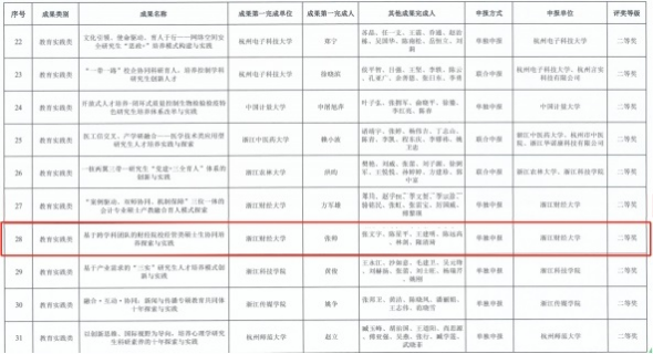张帅教授牵头,我校独立申报的《基于跨学科团队的财经院校经管类硕士生协同培养探索与实践》项目荣获教育实践类成果二等奖。