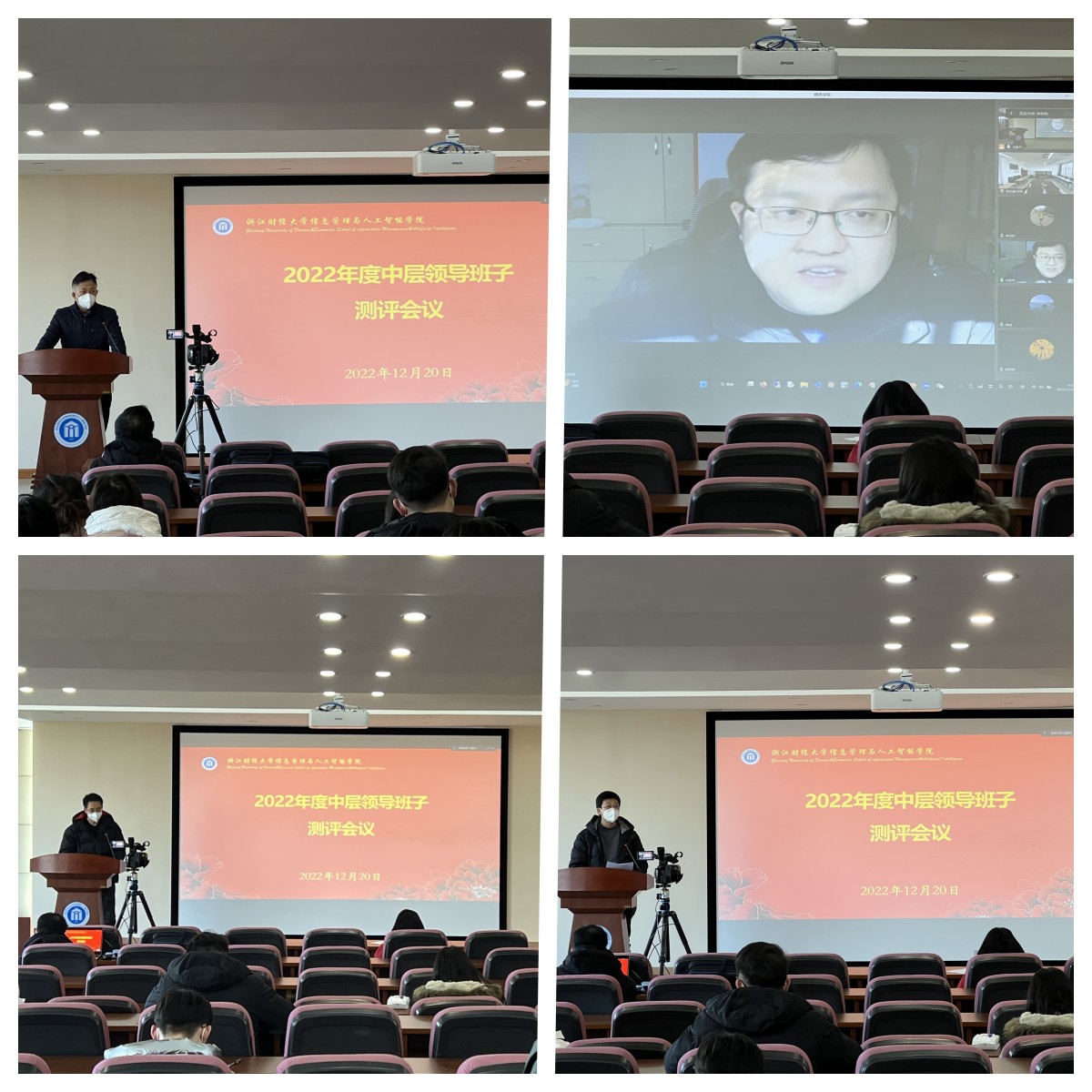 会上进行了学院领导干部述职、民主测评事项。学院院长张帅、党委书记徐奇伟、副院长陈远高、副院长隆清琦、党委副书记田聪依次向学院全体教职工汇报今年学院的各项工作情况和取得的成果,随后参会教职工对学院领导工作进行了民主测评。