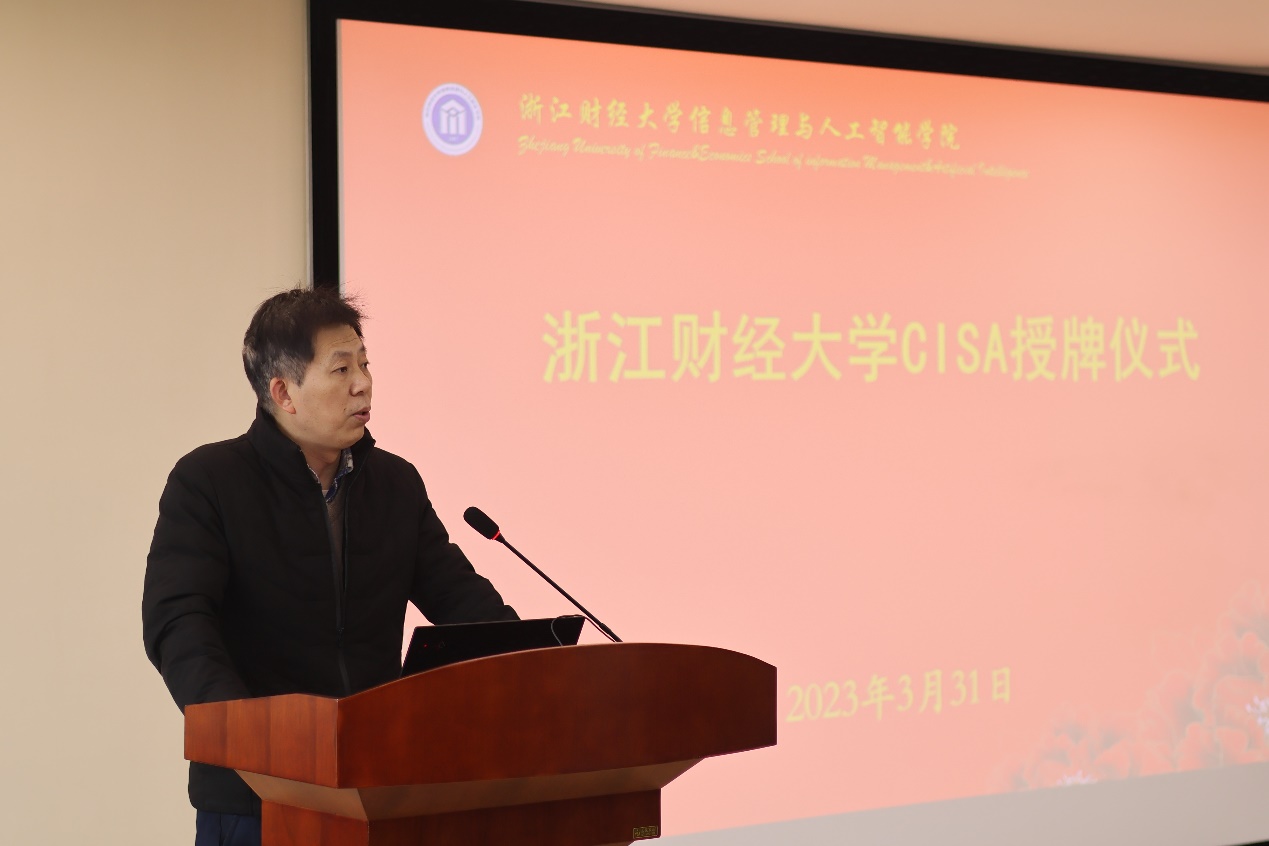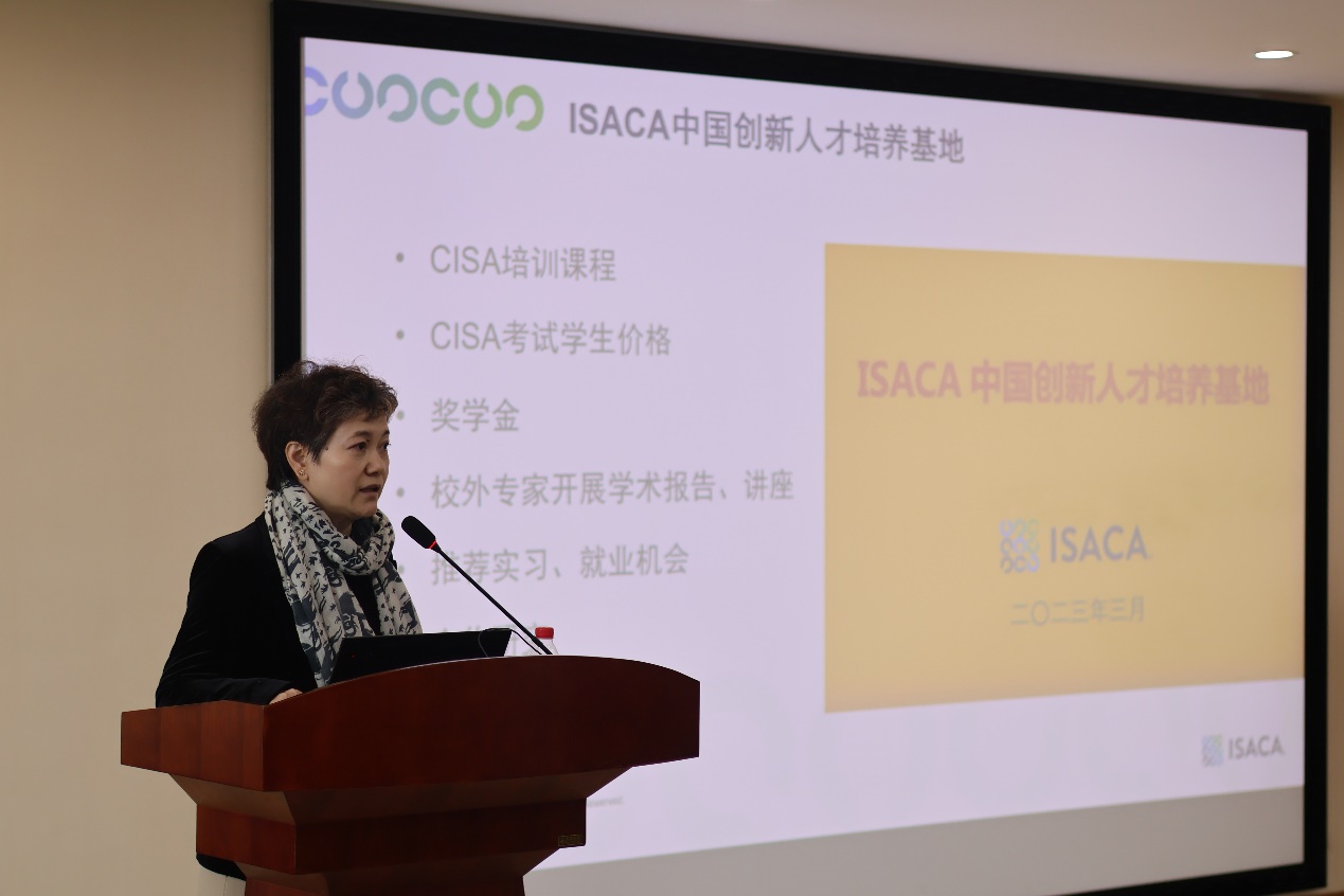 张帅教授发表致辞,回顾学院与ISACA的合作历程和取得的成绩,此次CISA授牌将推动司机社