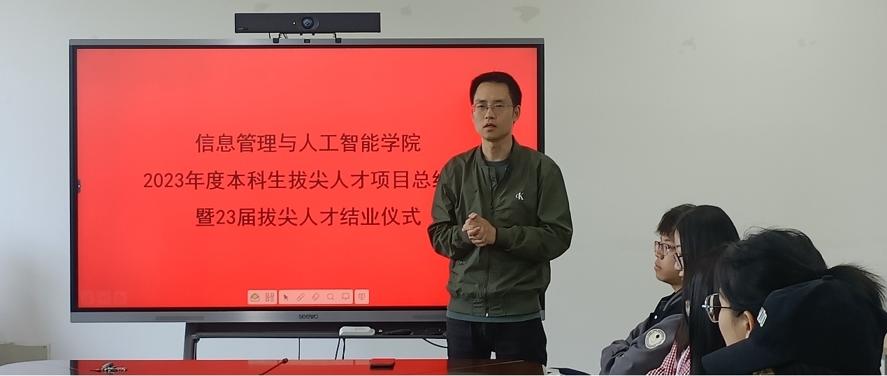 在404会议室召开2023年度本科生拔尖人才项目总结会暨2023届拔尖人才结业仪式。会议由班主任姜辉老师主持,项目班全体成员参加了此次总结会。