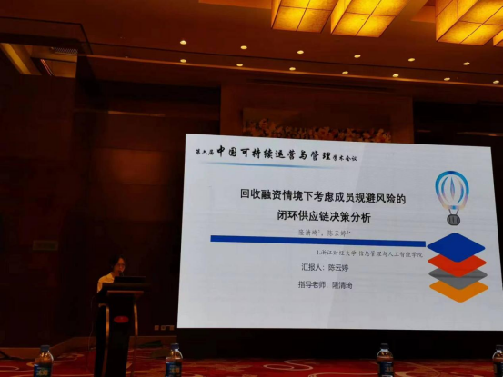 研究生陈云婷做了题为“回收融资情境下考虑成员风险规避的闭环供应链决策分析”的论文宣讲。这次参会对于加强学科交流和提升司机社