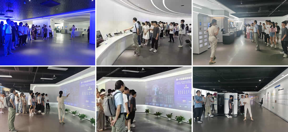 师生一行首先跟随公司解说员的步伐参观了正元智慧科技展览馆,了解公司发展历程、核心产品和司机社等,近距离体验主要产品的使用场景,对AIoT技术的应用及发展前景有了更加直观的了解。