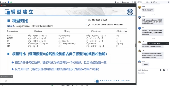 研究生做学术报告,李教授分享的主题是“Noval formulation and logic-based Benders decomposition for integrated parallel machine scheduling and location problem”。学院张树柱老师与研究生团队参加了讲座,线上参与人数大约七十余人。讲座由信管系张树柱老师主持。