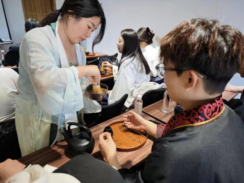 讨论结束后,大家体验了非遗文化——点茶。茶艺师傅们展示了传统的点茶技艺,向大家展示了茶叶的选取、泡制和品饮过程。参与者们可以近距离观察茶艺师傅的熟练动作,感受茶文化的深厚底蕴。