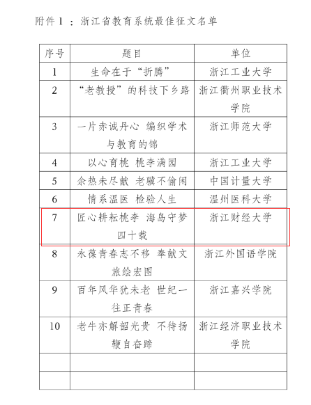 “寻迹桑梓,‘青’听五老”实践团的作品《守望海岛教育的“摆渡人”》、《匠心耕耘育桃李 海岛守梦四十载》分别入选省教育厅2023年“读懂中国”优秀微视频、最佳征文。