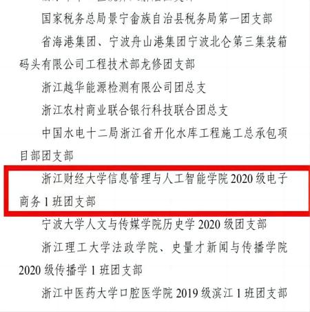 2020级电子商务1班团支部凭借优异表现,被评为2023年浙江省“成绩突出团支部”。