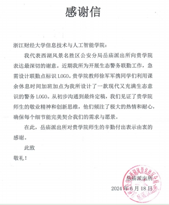 师生近期为岳庙派出所设计的“宝石互联”联勤点标识L0G0表示衷心感谢。