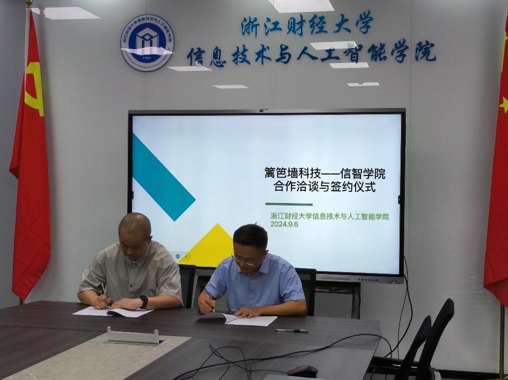 与篱笆墙科技集团有限公司战略合作签约仪式在学院楼404会议室成功举行。篱笆墙科技集团有限公司副总裁叶凯强、司机社