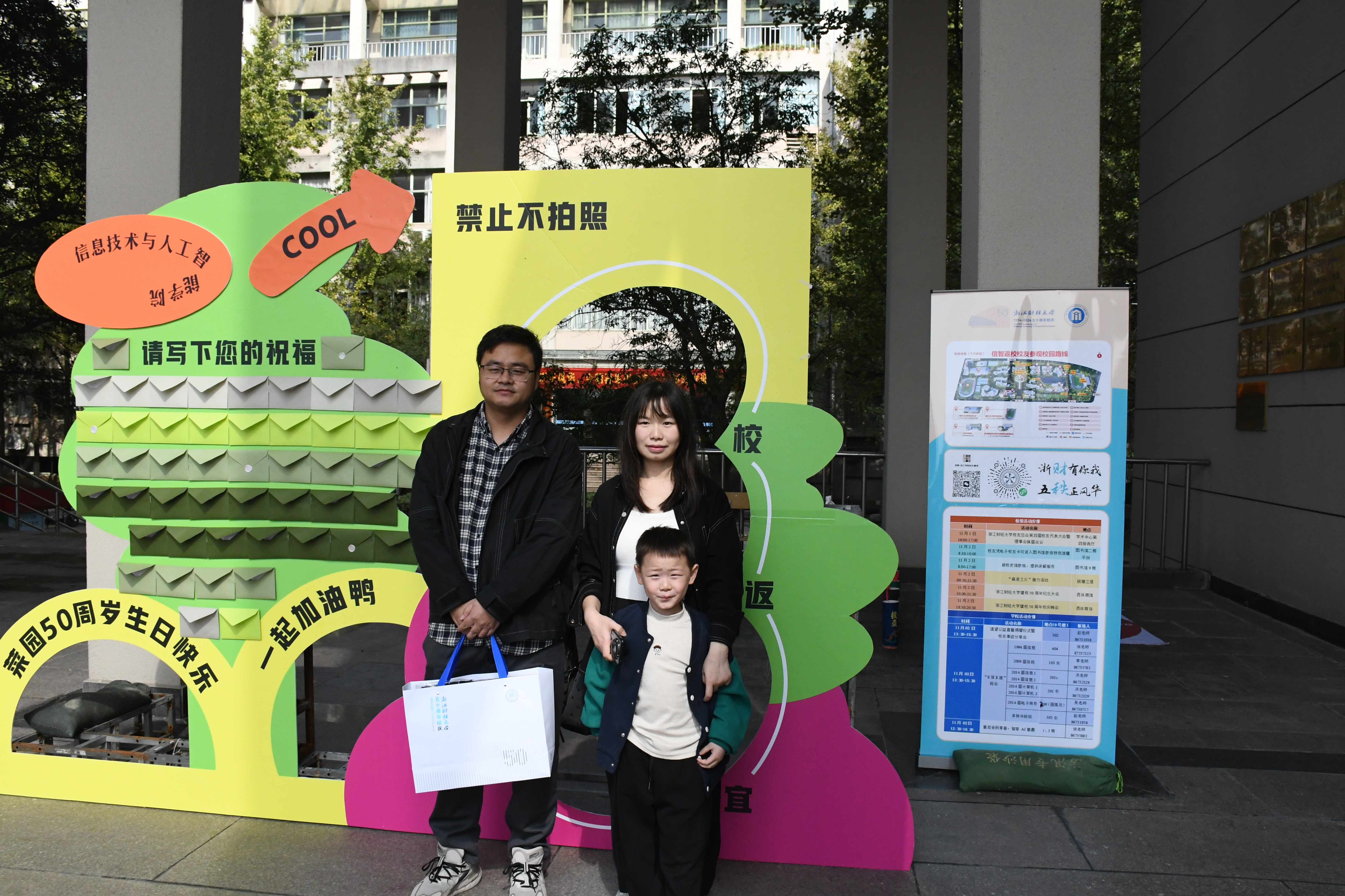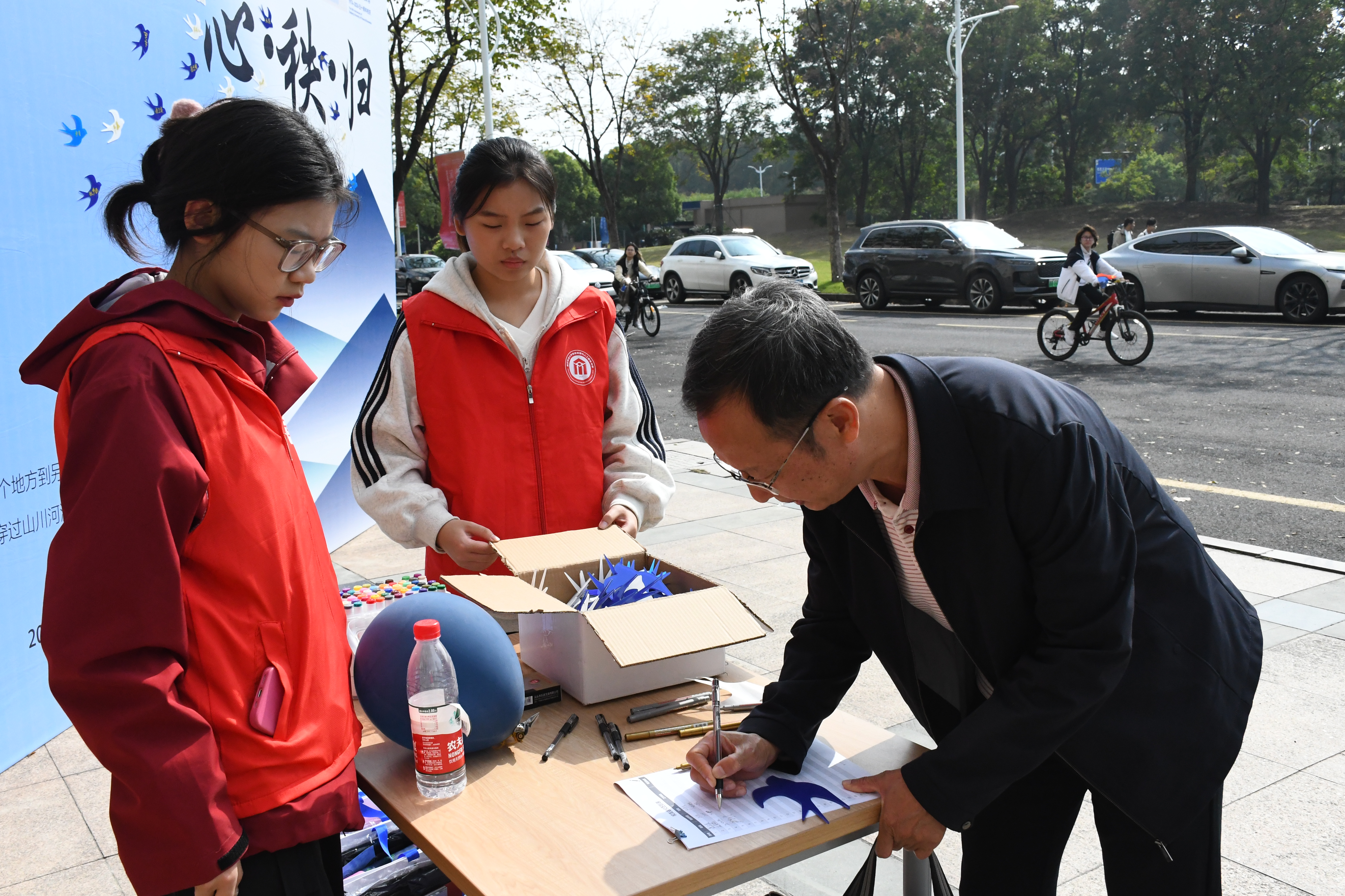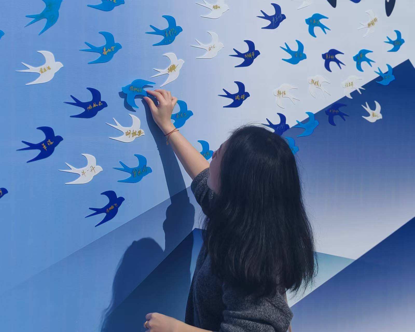 9号楼签到处,校友们从志愿者手中接过可爱的“飞鸟”签名板,认真地写下自己的名字,亲自将其贴到“山川”之上。如同远飞的鸿雁,在历经风雨后,怀着对往昔的怀念和对未来的期许,重回母校温暖的怀抱。