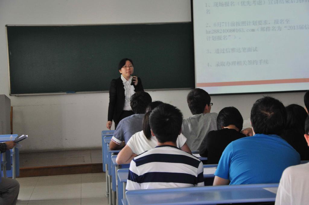 在A-105举行了“软件外包实训实习校园宣讲会”,塔塔、凯捷、信雅达、杭州服务外包联盟、杭州归谷中心等五家知名的软件外包企业和培训机构来我校作了宣讲,宣讲会由信息学院院长助理张帅老师主持。