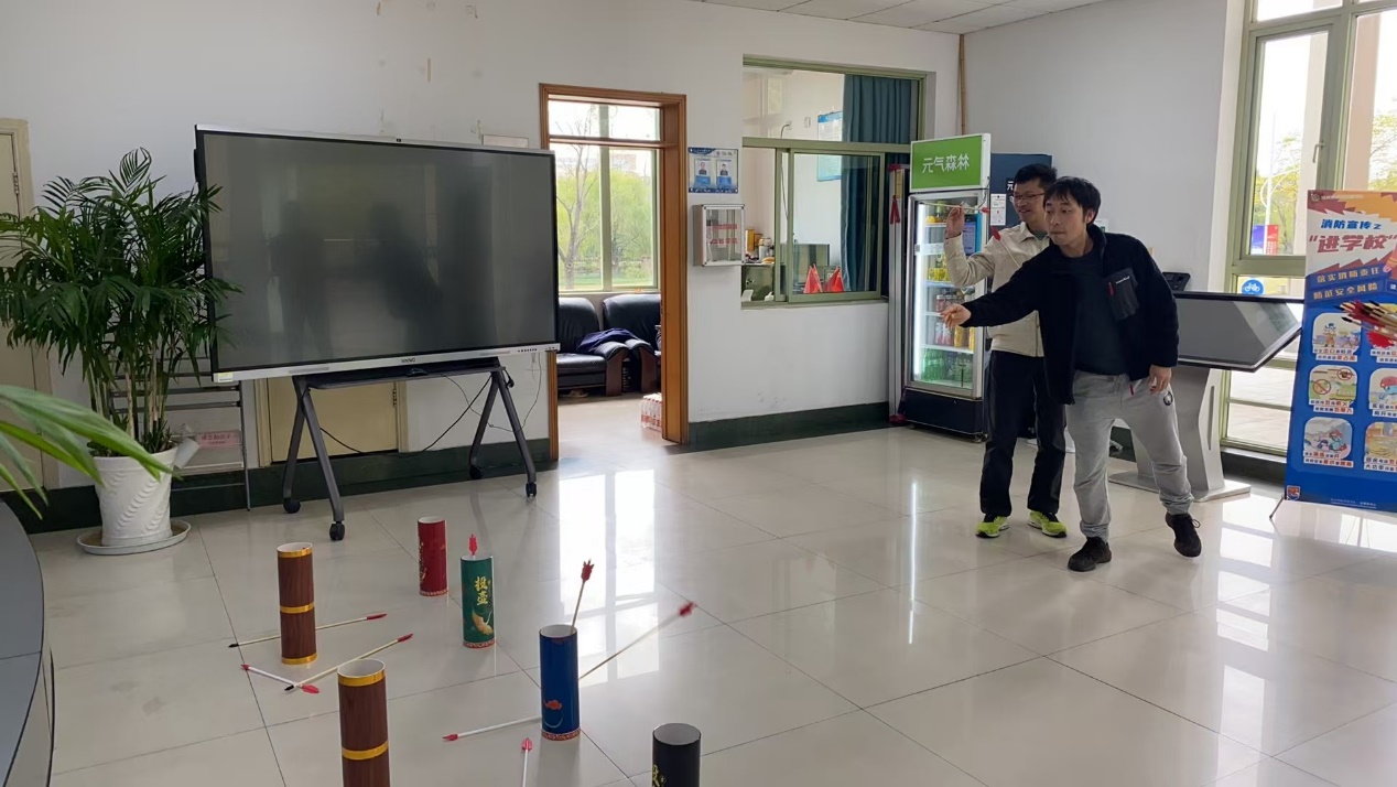 本次活动对于参赛者要求不高,普及性较广,活动现场气氛热烈。游戏依据进行远距离设置不同的分值,具有一定的挑战难度,考验各位老师的策略谋划和出箭力度把握的稳定性,是否能准确命中壶口最为关键。活动现场掌声、欢笑声、喝彩声不断,选手们场上场下互动交流投射技巧,相互鼓励,手握箭矢孤注一掷,听飞箭落壶欢呼雀跃!