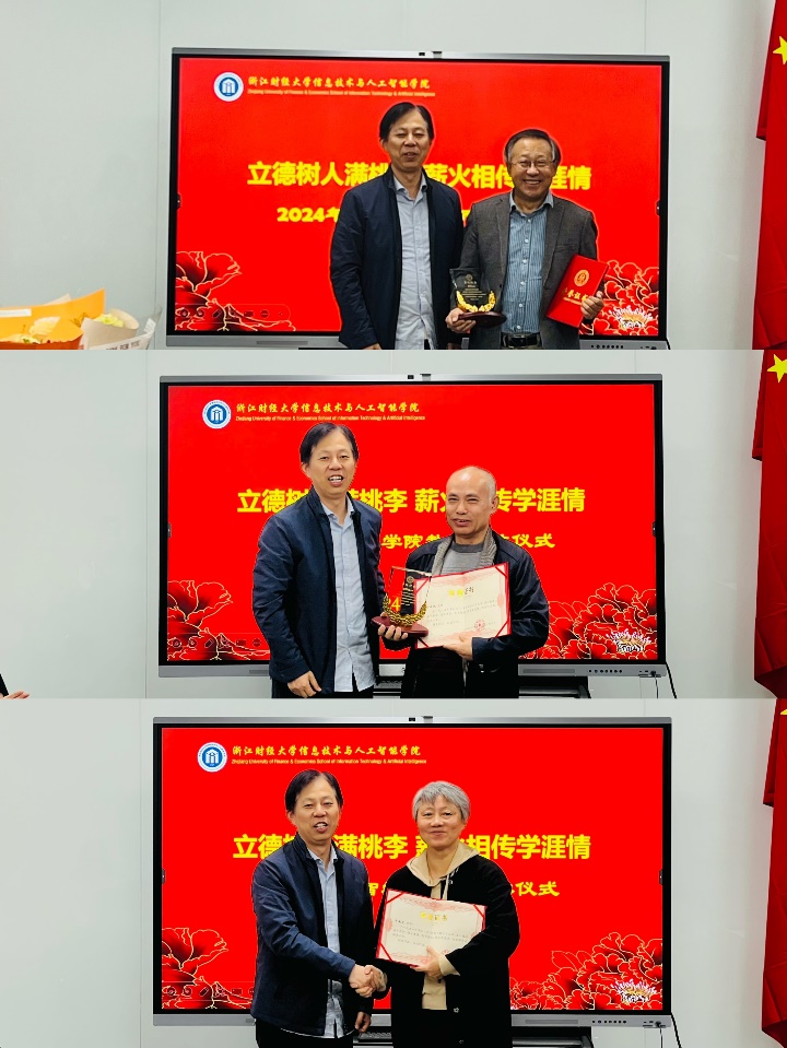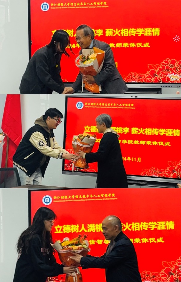 全体师生,向光荣退休的李老师、于老师和邓老师表达了深深的敬意,对他们长期以来对学院发展的卓越贡献和不懈坚守表达了真挚的谢意,并为他们即将步入的人生新阶段送上了美好的祝愿。同时,鼓励学院的青年教师主动向这些资深前辈求教,传承并发扬光大教书育人的崇高使命。此外,他也诚挚邀请荣休教师们能时常回访学院,继续为学院的发展贡献智慧与力量,携手共创更加辉煌的明天!