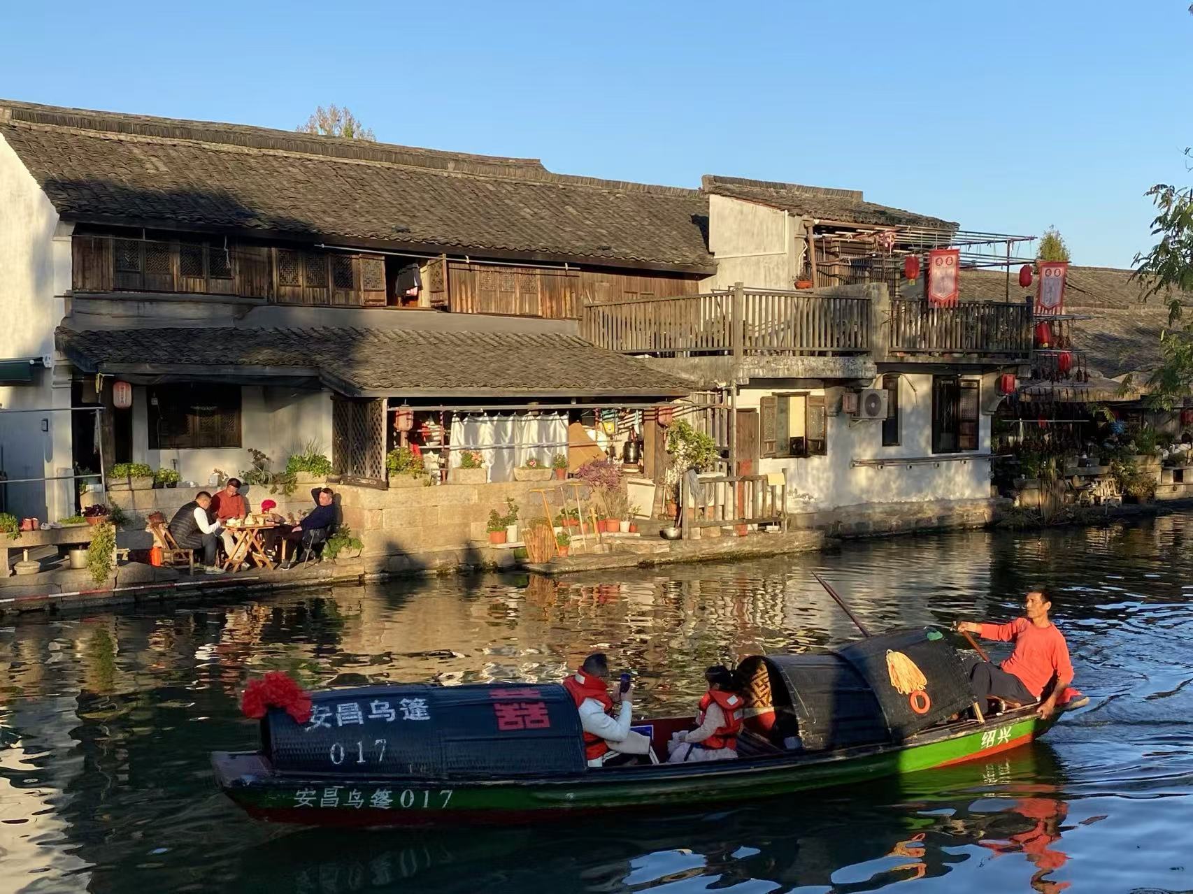 下午大家来到安昌古镇,这座位于绍兴西北部的千年古镇,宛如一颗璀璨的明珠,散发着浓郁的年味,承载着江南水乡的独特韵味和深厚的历史文化内涵。老师们踏入古镇,首先映入眼帘的是那一串串挂满沿河廊檐下的腊肠、酱鸭和鱼干等腊味,在冬日的阳光下泛着诱人的光泽,散发着阵阵酱香。沿着古镇的青石板路漫步,古街两旁的传统店铺琳琅满目,摆满了各种特色商品和年货。从扯白糖、黄酒棒冰到各种手工艺品,应有尽有。当地的居民们在街边悠闲地生活着,或晒太阳、或聊天、或忙碌着手中的活计,展现出一幅充满烟火气的生活画卷,让人感受到浓浓的年味和家的温暖。