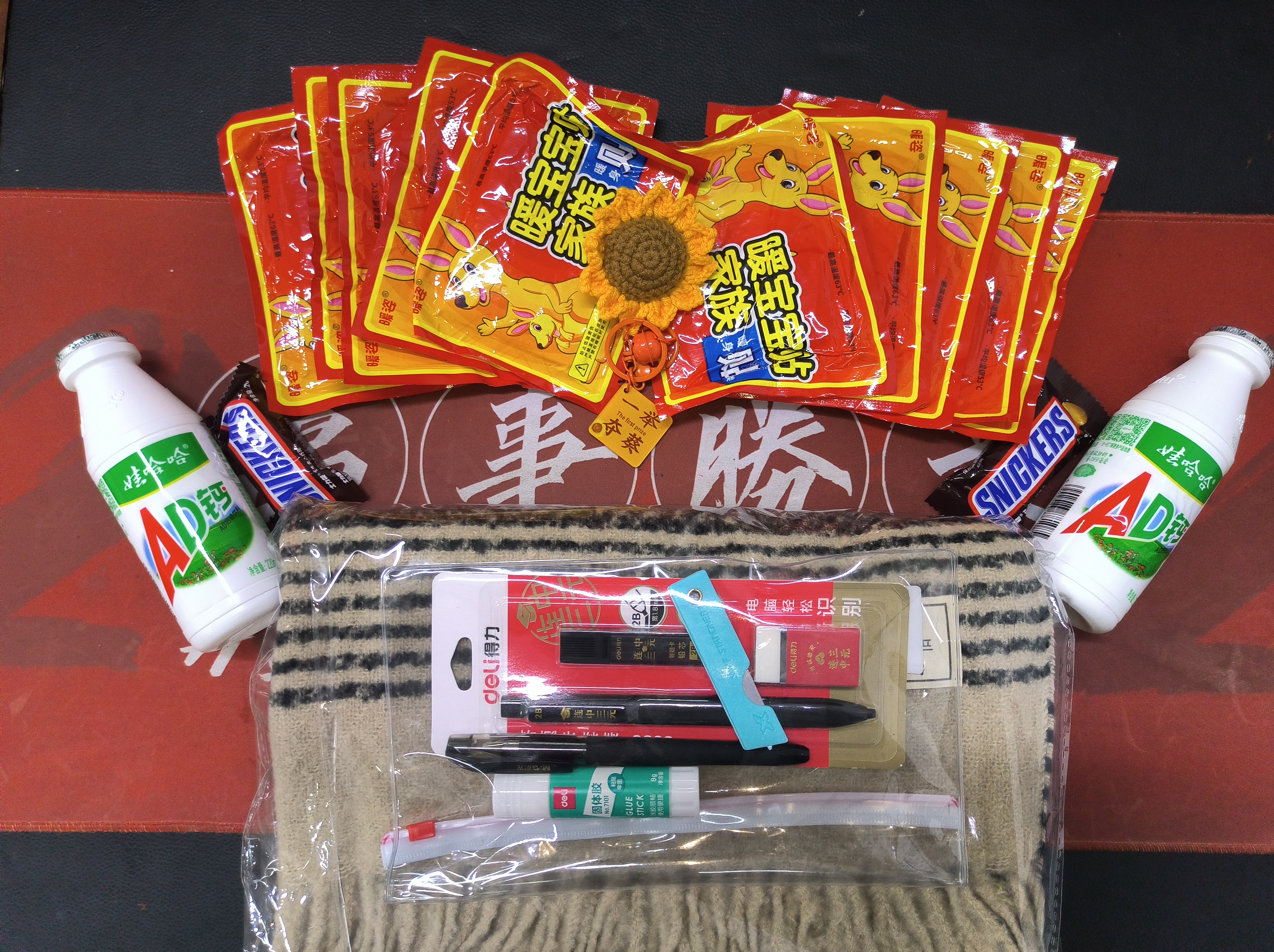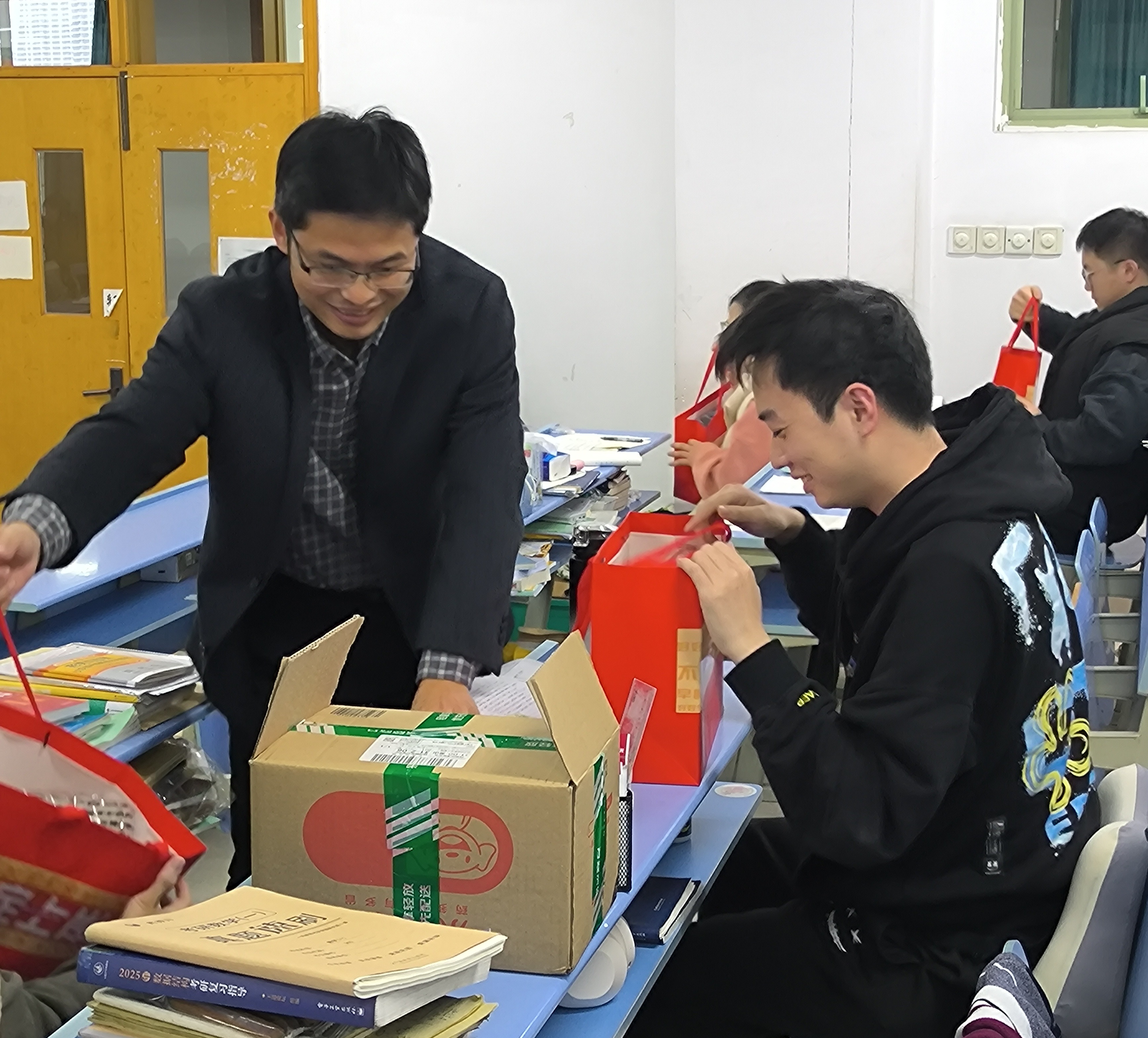 张帅院长鼓励同学们要坚定信心,保持良好的学习状态和心态,充分发挥自己的潜力,勇敢迎接考研挑战。同时叮嘱同学们在努力复习的同时,也要注意劳逸结合,合理安排作息时间,保持身体健康,以最佳的精神风貌迎接考试。老师们亲手将精心准备的慰问礼品发放到学生手中,这些礼品承载着学院对学生的殷切期望与深深祝福,让学生们在寒冬中感受到了浓浓的暖意。