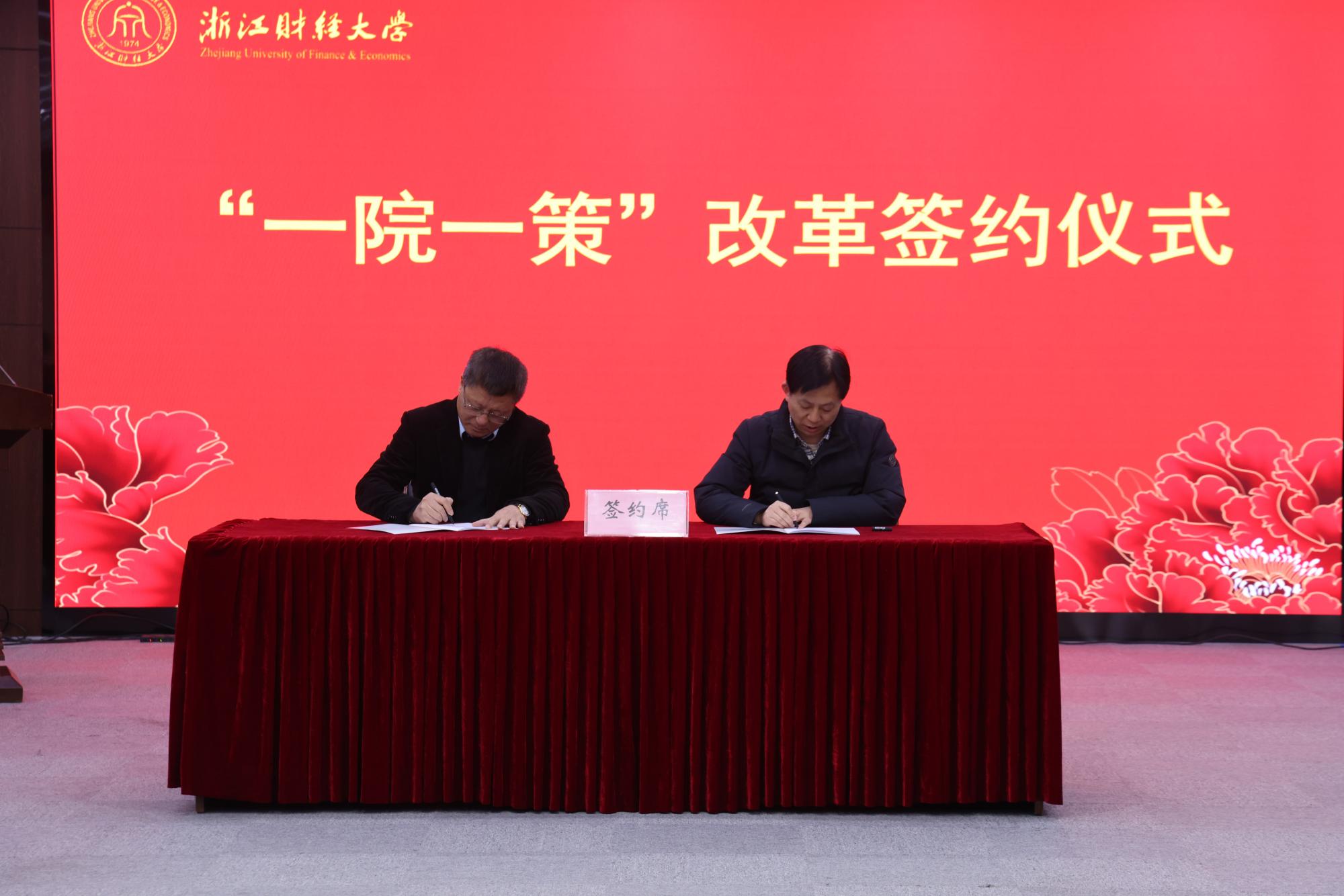 2月14日,学校首个“一院一策”改革签约仪式隆重举行。校党委副书记、校长魏江代表学校与司机社