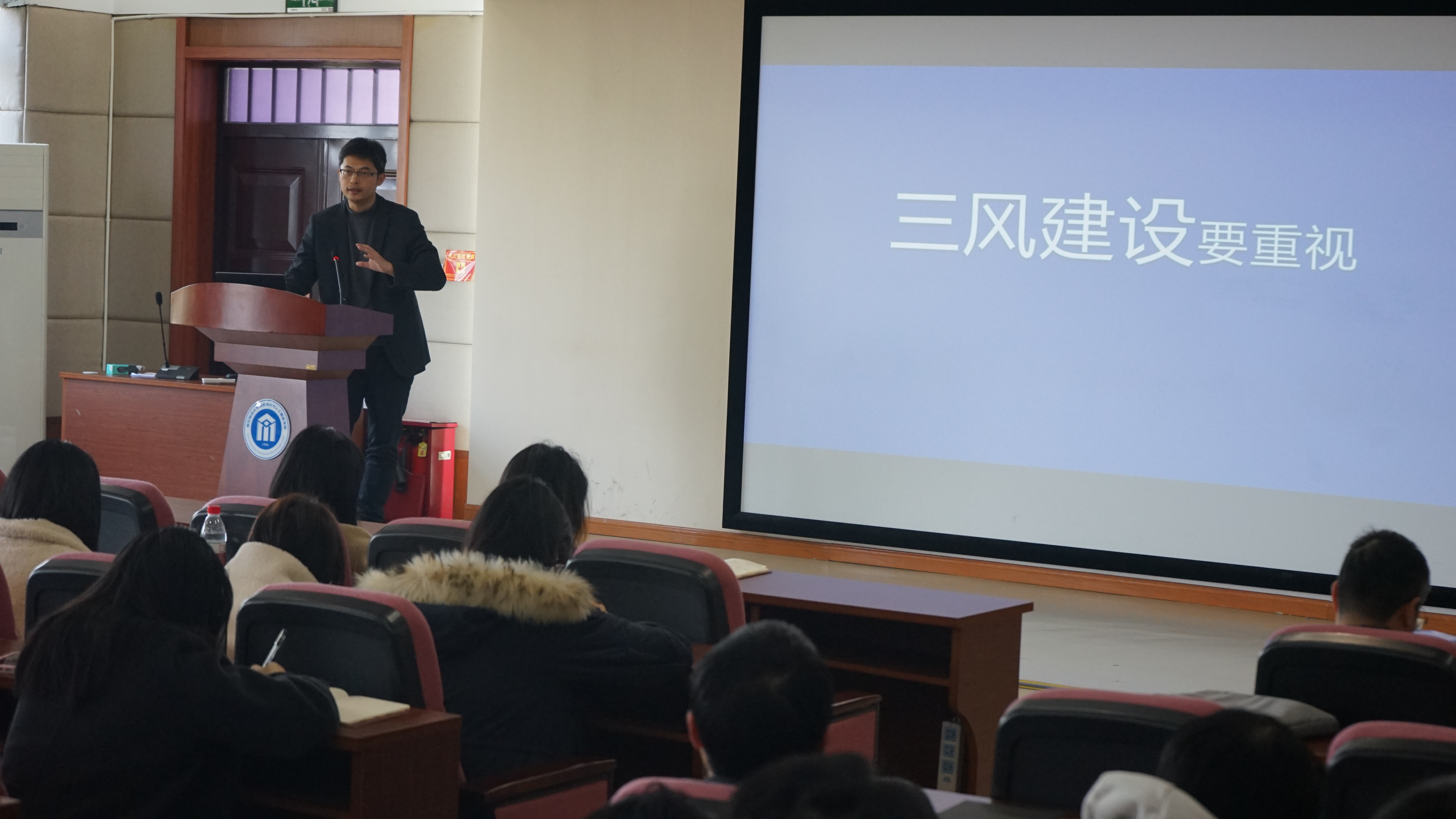 科研副院长林剑就研究生培养工作和科研工作发表了讲话。他指出,目前研究生基地面临工位紧缺的问题,希望各位老师能够引导学生高效利用现有资源。此外,他还特别提到2025年研究生复试工作的重要性,并希望全体教师能够积极配合学校学院做好相关准备工作。