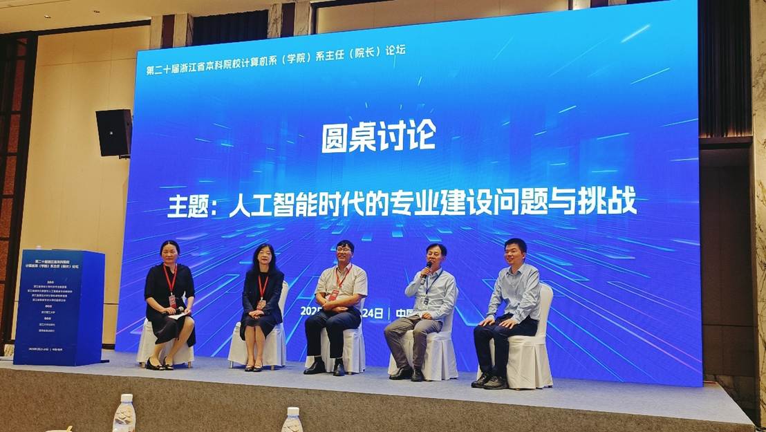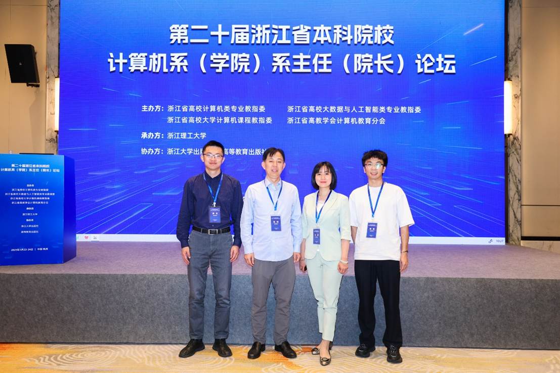 2025523-24日,第二十届浙江省本科院校计算机系(学院)系主任(院长)论坛在浙江杭州召开。论坛由浙江省高校计算机类专业教指委、大数据与人工智能类专业教指委、大学计算机课程教指委及高教学会计算机教育分会联合主办,浙江理工大学承办,浙江大学出版社、高等教育出版社协办。司机社 院长张帅、副院长朱凌、软件工程系主任涂乐、专任教师陈勇四位老师应邀参加论坛。