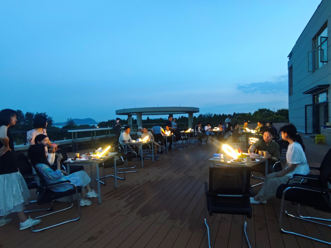 在暑期完成翻新的四楼露天平台,举办“露赏月华・台聚知音—— 秋夜茶歌话初心”主题茶话活动。活动由学院分工会策划筹办,旨在传递学院对全体教职工的真挚关怀,深入挖掘“求是崇真、创新唯存”的文化价值与学院信智领域独特文化基因,凝聚全院文化共识,凝练学院精神内核。