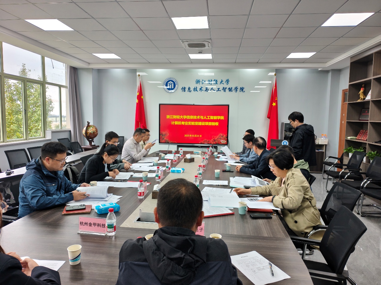 2025年10月21日下午,我校省财政专项建设项目计算机专业实验室验收大会在学院顺利举行。本次验收专家组由杭州电子科技大学王万强老师、中国计量大学魏艳红老师、杭州师范大学陶国芳老师,以及我校经管实验中心罗松老师、学院软件工程系主任涂乐老师共同组成。学校资产与实验管理处副处长黄伟泷、实验管理办公室赵李冰老师、采购管理办公室涂建辉老师,学院院长张帅、教学副院长朱凌、党委副书记(兼纪委书记)吴轶韵,实验中心工作人员以及项目建设供应商代表一同参加了验收会议。