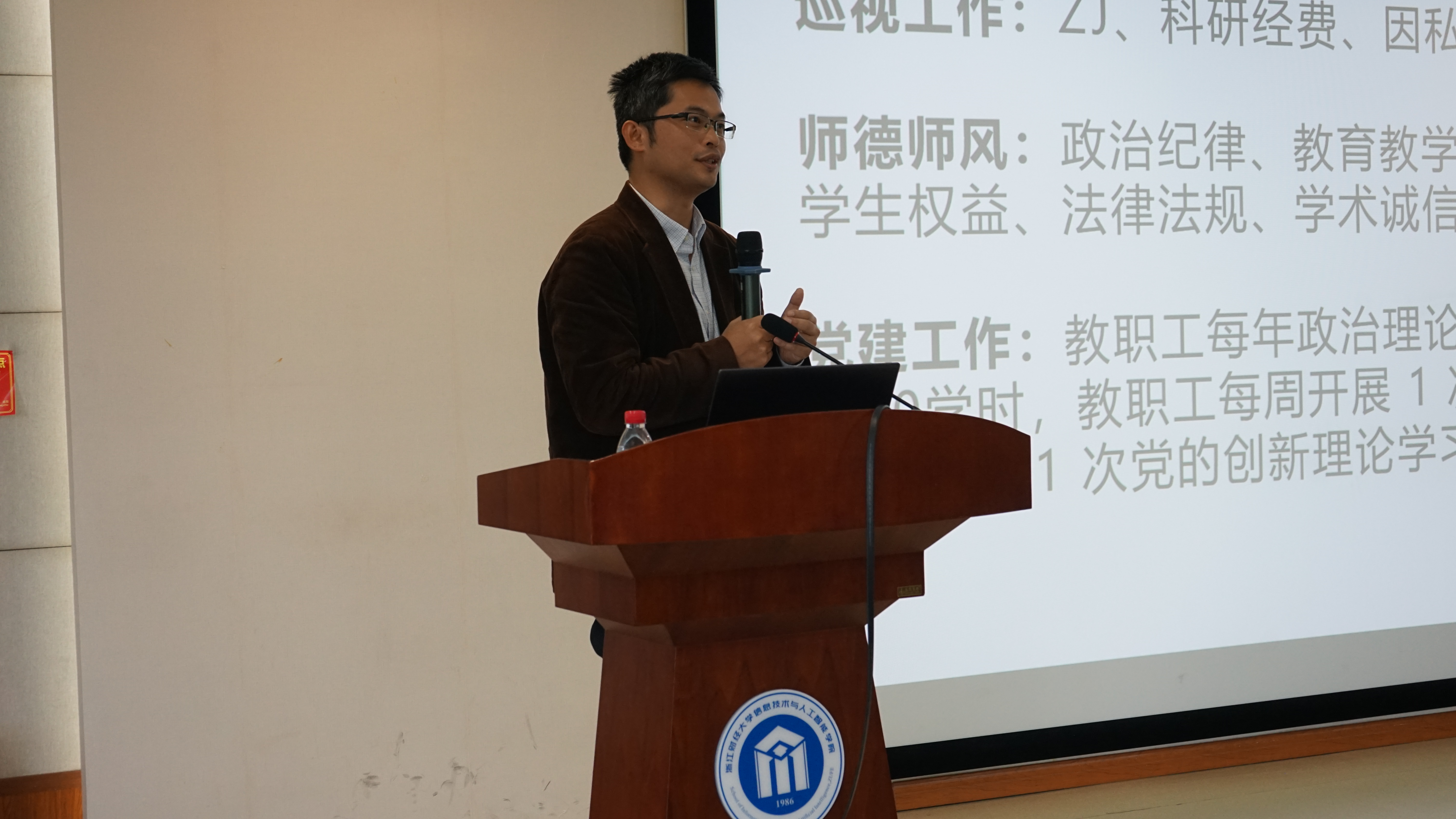 学院党委书记吴翼泽强调了“三风”建设对提升教育教学质量、营造良好学术氛围及推动学院内涵式发展的重要性,希望教职工以身作则,积极投入。此外,他号召全体教师积极参与“使命文化”大讨论,深入探讨学校在新发展阶段的使命、愿景和价值观,聚焦学校学院历史脉络与新时代发展要求,深度挖掘浙财校训与浙财精神的内涵实质,将讨论成果转化为推动学校、学院事业高质量发展的实际动能。