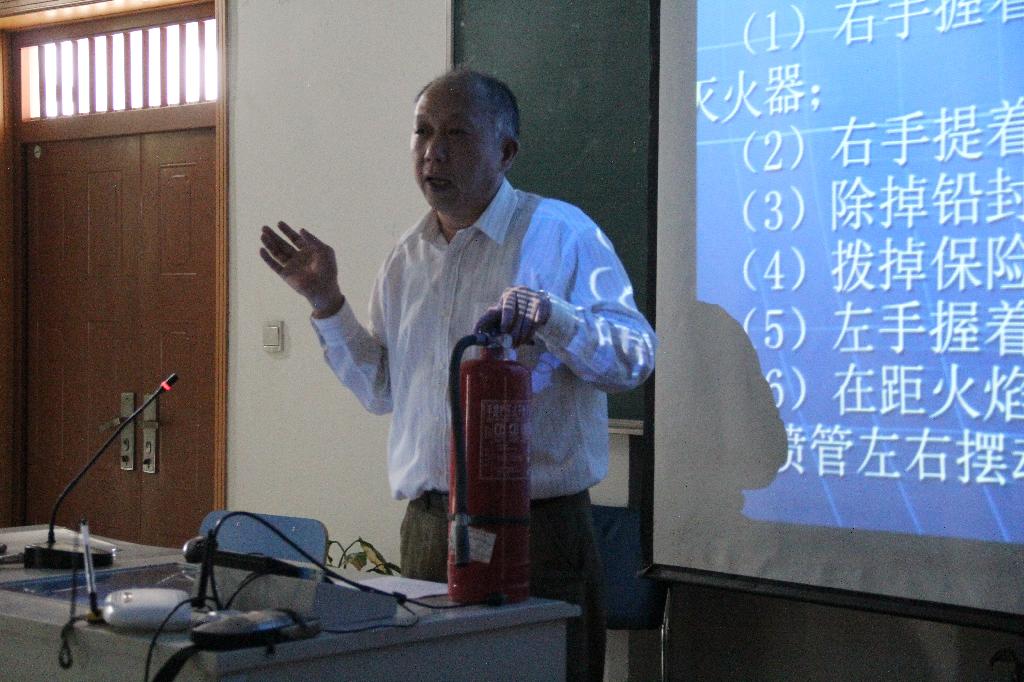 邀请到了保卫处李烨老师作消防安全知识讲座并担任消防安全演练总指挥。