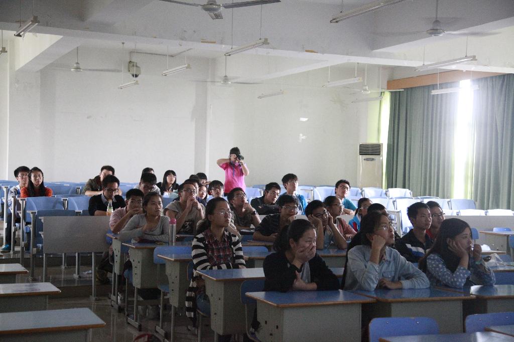讲座上,李老师以生动的图文形式帮助同学们理解和掌握消防安全知识。首先,他让同学们观看了上海商学院学生宿舍火灾的视频录像;接着以图片形式展示了我校在安全检查过程发现的各种安全隐患情况;然后,李老师从十个方面详细讲解了火灾逃生的技巧。