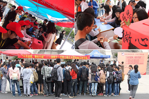 一元钱工程主题活动于近日在校体育馆前举行,现场活动吸引了众多师生的参与。