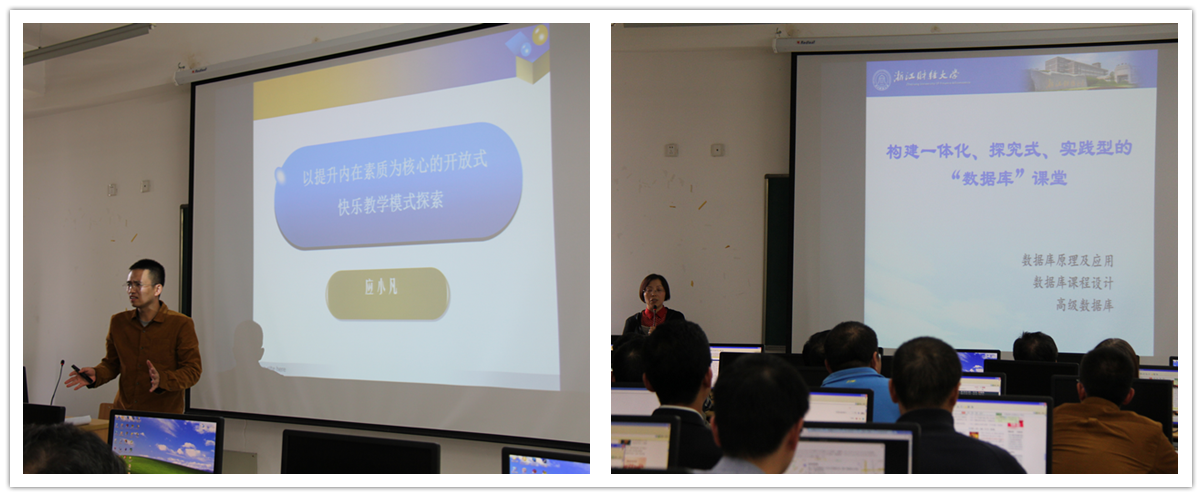 目前共有两项校课程教学范式改革项目,首先,“以提升内在素质为核心的开放式快乐教学范式改革”项目负责人应小凡副教授以PPT课程教学作为授课案例,具体介绍了《大学计算机基础》课程教学范式改革的理念;“面向实践应用能力和创新意识培养的数据库课程教学范式改革”项目负责人马雪英副教授汇报了该项目的现状、进展以及改革目标,并分享了课程改革过程中取得的部分成效。