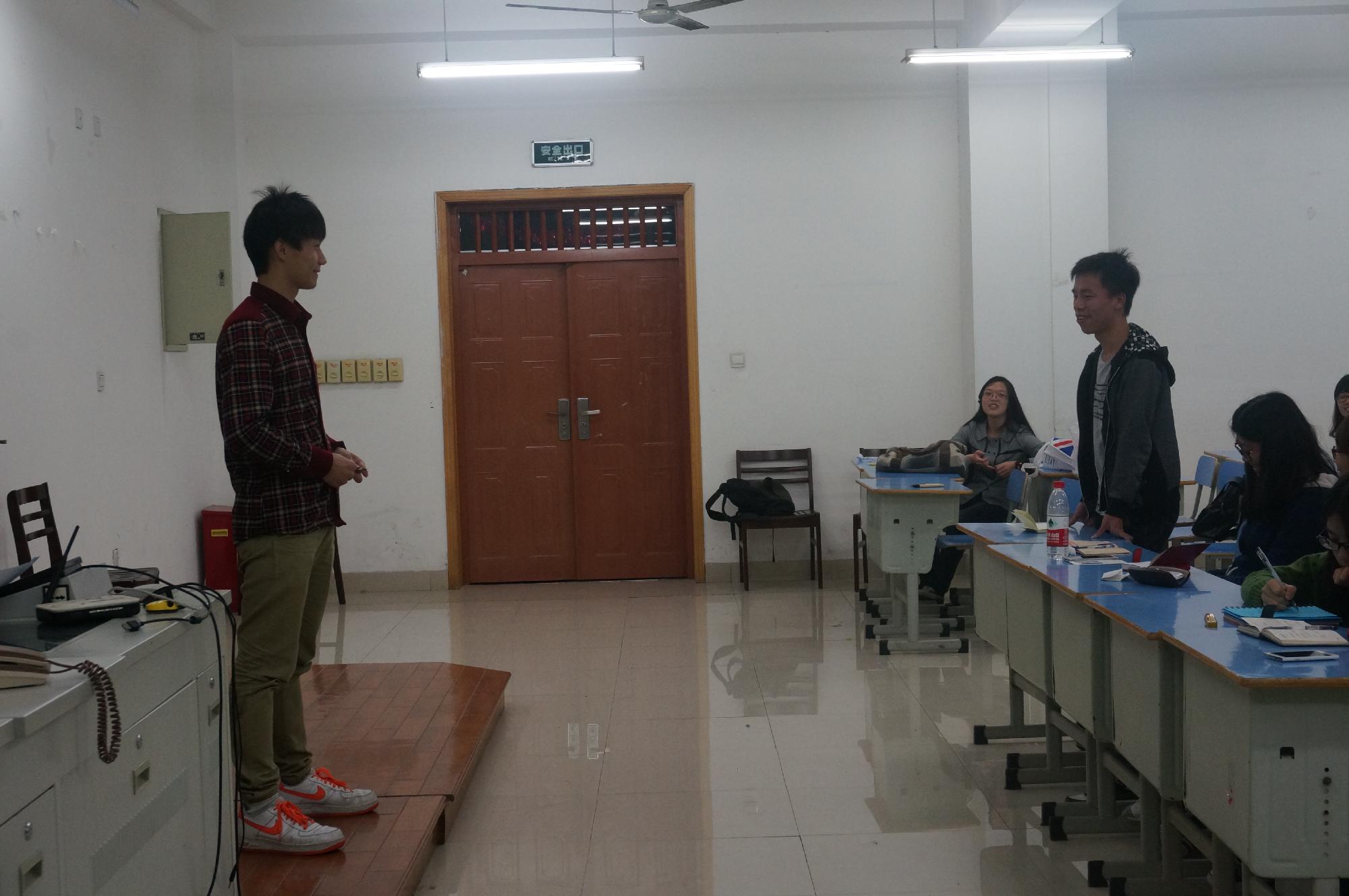 最后是提问环节。各个部门的代表陈述出自己的缺点和对学长提出问题。各个部门的陈述和提问都十分精彩,比如办公室的邹洁昊侃侃而谈,完整地向学长陈述了自己的疑问,体育部的修宇航很清楚地了解了自己的优缺点并且明确了自己只想当副部的愿望等等,学术部,司机社,外联部、自律部、广宣部等等学生会部门代表都认真地提出了自己的问题,学长也一一地给出了自己的意见和看法。