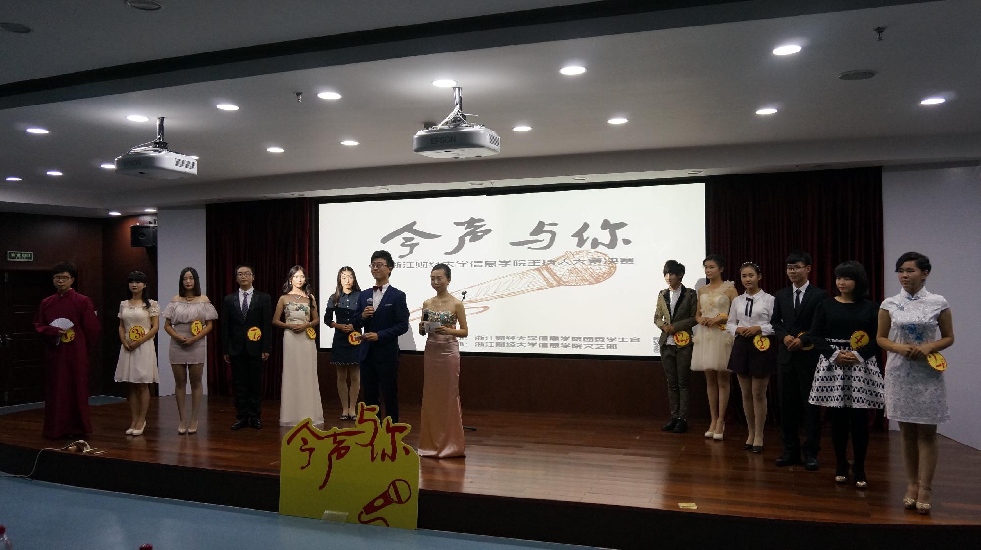 信息学院2014年度学院主持人大赛决赛在学术中心四号报告厅举办。校艺术团主持朗诵组组长潘佳丽同学,校艺术团主持朗诵组副组长孙宏明同学,2013年度校主持人大赛金话筒鲁煜同学,2013年度校主持人大赛银话筒蒋宇飞同学,校主持朗诵组资深成员、2013年度财政学院银话筒陈兵文,2013年度校主持人大赛最佳潜力奖获得者王睿同学出席并担任大赛评委。学院领导、辅导员及2014级全体新生参加了活动。