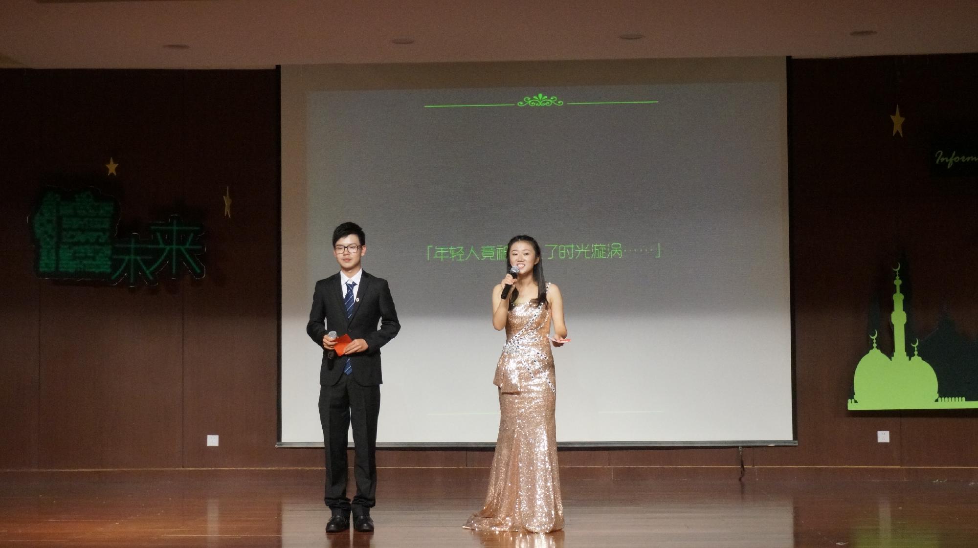 晚会一开始的开场舞节目《零下舞度》就深深吸引了观众的眼球,带着荧光绿的黑衣人在舞台上活力四射、独具一格的表演形式为观众带来了无限惊喜,也迎来了一阵阵喝彩声,体现了信息学院学生别致的新颖构思及动手创新能力。接下来的情景剧《IT男爱情故事》也迎来了观众们的掌声。相声《请您吃饭》更是与现场观众玩起了互动,将晚会的氛围推向了一个小高潮。诗朗诵《友谊万岁》让我们感悟,时光荏苒,光阴终要载着我们的青春奔向远方,但有一样东西可以长存,那便是我们的友情。喉嗓棒的俊男美女们集结的歌曲联唱节目《新鲜感》又让现场观众陶醉在了美妙的音乐世界中。歌舞剧《小黄人之歌》的表演者们模仿小黄人惟妙惟肖,全场观众都忍俊不禁,他们以卖力的演出换来了观众的笑声及认可。军训回忆录《我的军魂》仿佛让军训的场景重现,男生排女生排一起拉歌,一起嬉笑,入学近两个月,我们还未完全融入这个城市、这个学校,但我们却已告别了一帮人,没错,就是我们的教官,节目最感人的部分也莫过于一段精心制作的小视频中教官们对我们的诚挚祝福以及殷切期盼。模拟发布会《阿里巴巴风云》以幽默诙谐的语气逗笑了全场观众,也让我们开始思考信息时代信息的重要性。走秀《waiting for you》让我们跟随着表演者的脚步,体会到了时光通道中那些故事中的景象,每个时代都有专属于那段时光的专署烙印,而我们对于每一段岁月都有或多或少的独家记忆。最后一个节目是各学院青协部长带来的演讲《爱心天使》,部长们的真情实感感动了现场的观众朋友,激起了他们为志愿活动献出自己一份微薄力量的行动,也让我们青年一代意识到了帮助别人是一项极富有意义的事情。