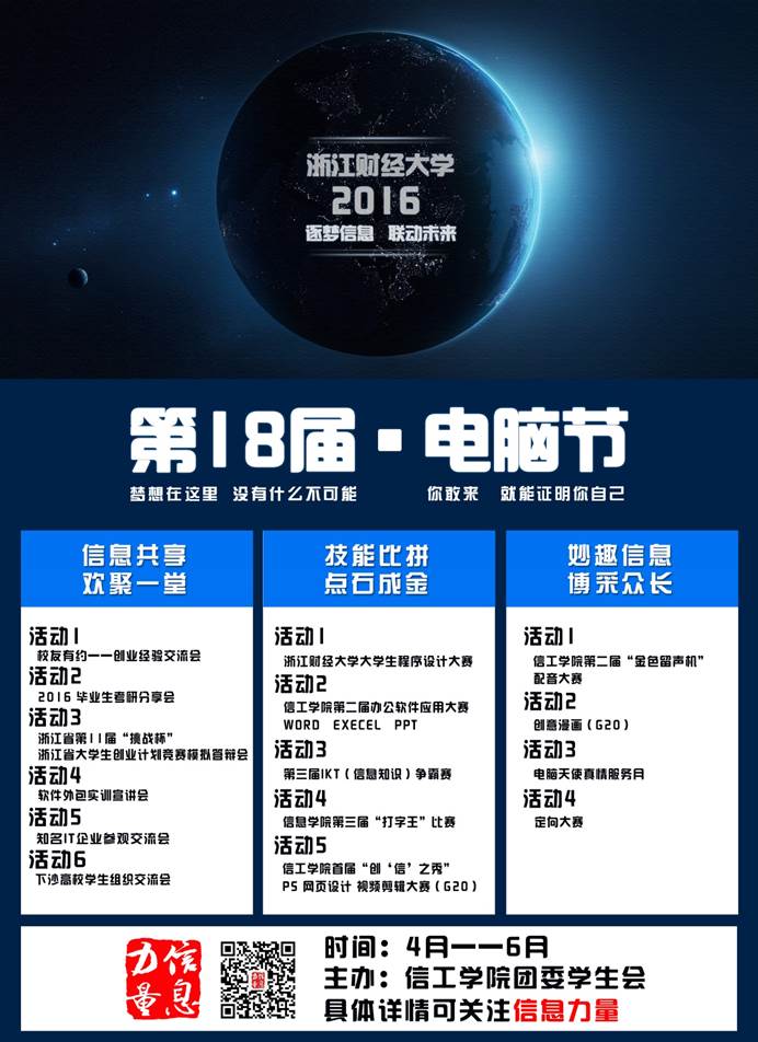 办公软件大赛只是一个开始,4月到5月,电脑节系列活动会逐一展开,同学们心动不如行动,踊跃报名参加吧!