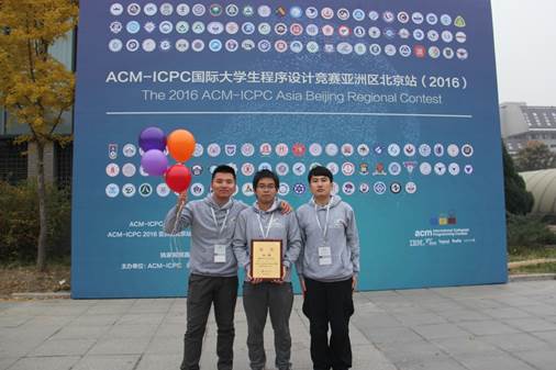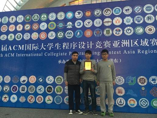 11月12~13日,第41届ACM国际大学生程序设计竞赛亚洲区域赛(青岛站和北京站)分别在中国石油大学和北京大学举行,来自清华大学、北京大学、香港中文大学等近200所高校的400多支队伍参加比赛。经过激烈角逐,由吴天棋(13软件)、王瑞洲(14软件)、周甄陶(14软件)组成的moonlight队获得的一枚银牌,由项闰冶(14计算机)、刘驰翔(14计算机)、史海虹(14信息计算)组成的 I am angry队获得一枚铜牌。