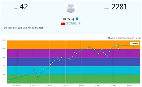 吴天棋学长曾获得2015年、2016年浙江省大学生程序设计竞赛一等奖,2015年国际大学生程序设计竞赛亚洲区域长春站银牌,2016年国际大学生程序设计竞赛亚洲区域赛沈阳站和青岛站银奖,20169月被阿里巴巴正式录用为C++研发工程师,吴天棋学长同时也拿到了网易等著名IT企业的offer